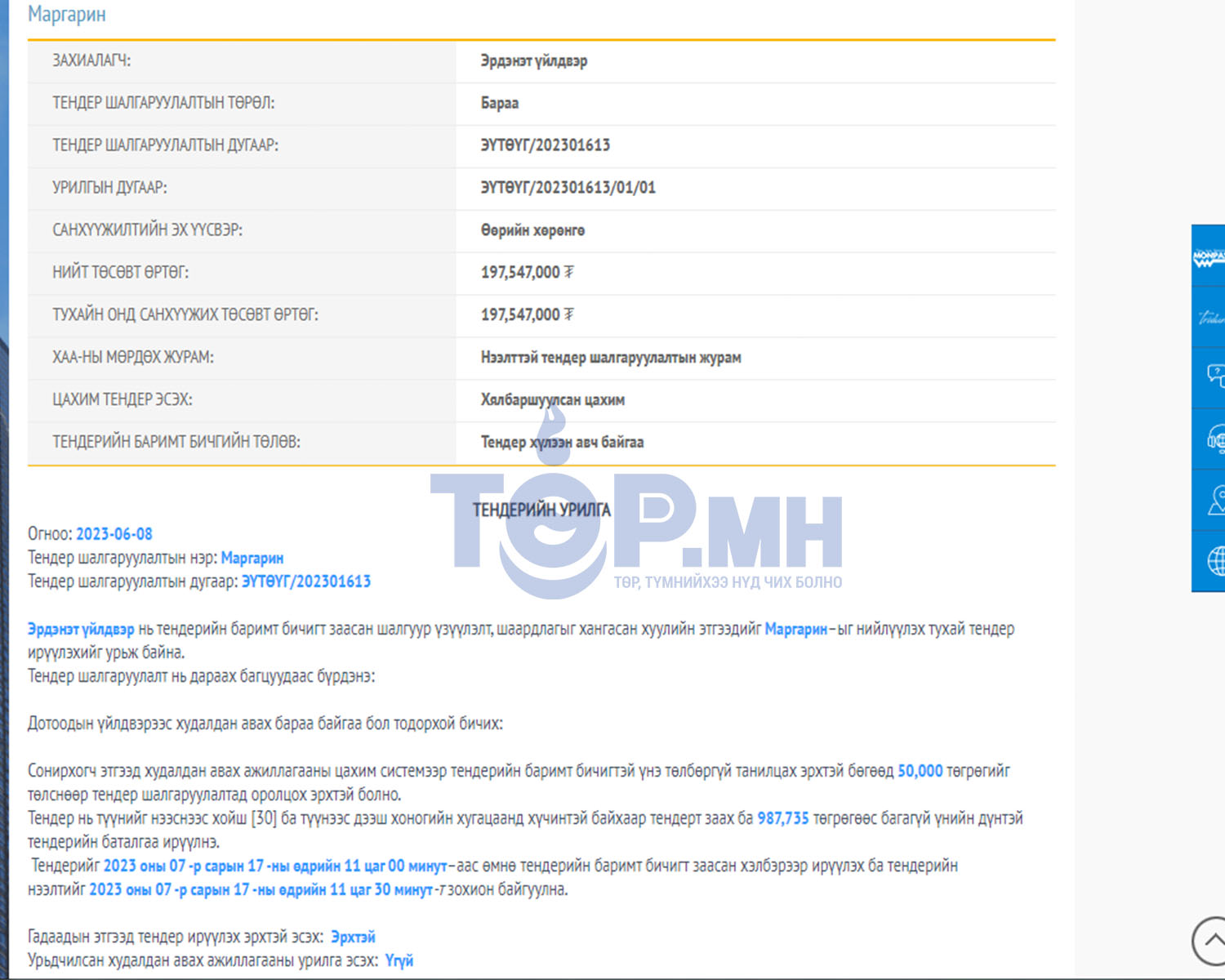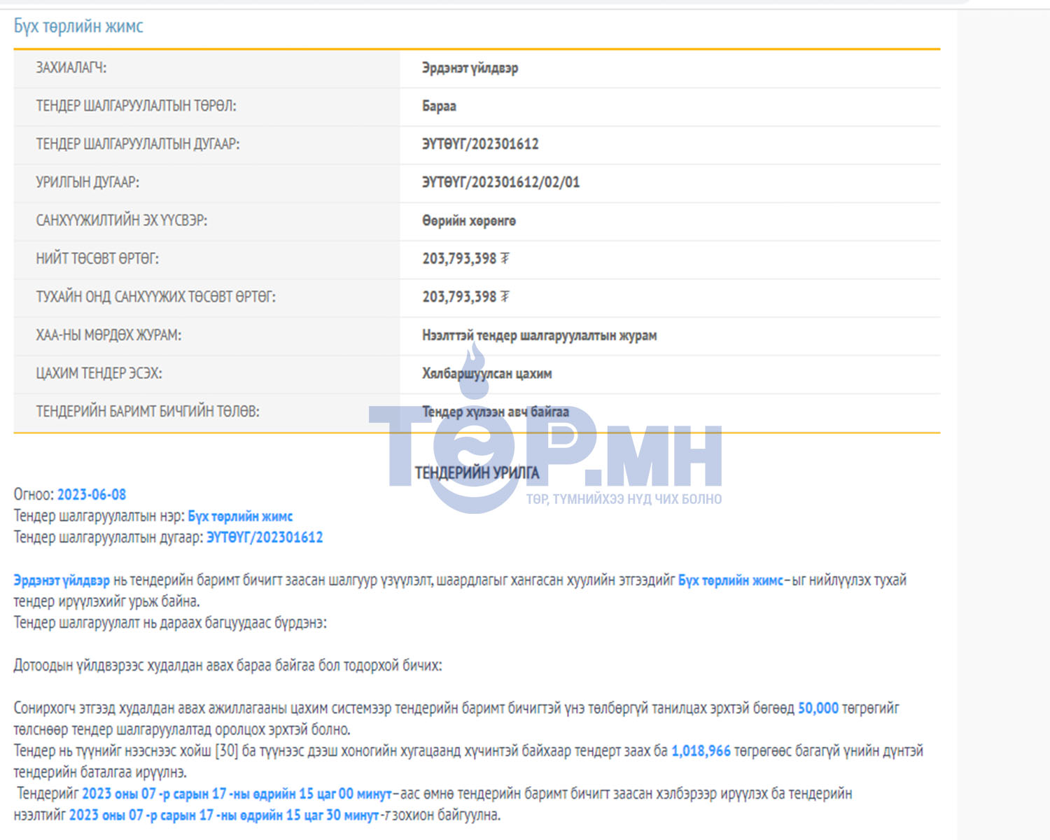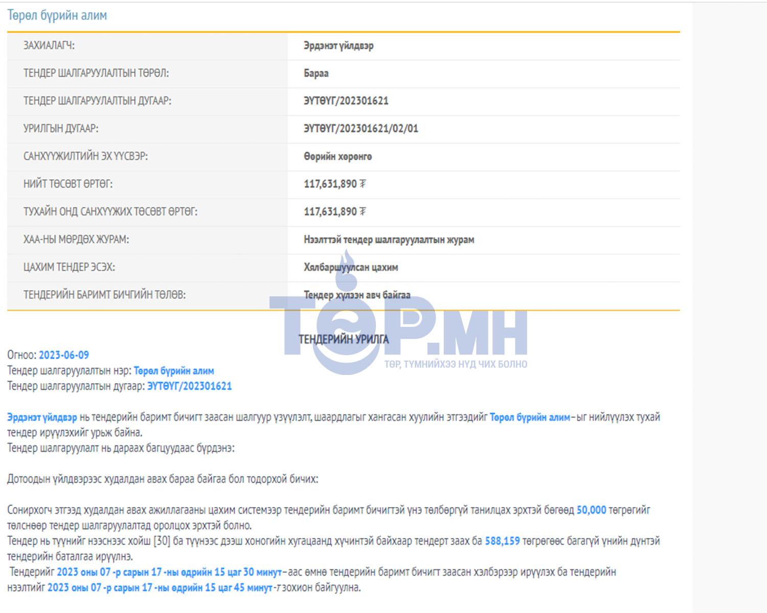 Тухайн ТЕНДЕР"-ийг хэдийгээр байгууллагын өөрийн хөрөнгөөр зарлаж буй ч үйлдвэр өөрөө Монгол Улсын баялагийн үр шимээр оршин тогтнож байгааг Г.Ёндон дарга та санах нь зүйтэй болов уу.