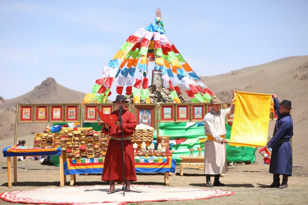 Дараа нь Монголын Бурханы шашинтны төв Гандантэгчэнлин хийдийн Тэргүүн хамба Д.Чойжамц тэргүүтэй лам хуврагууд Буман цагаан судар, Их тахилгат хайрхан уулсын сан, Дэвжид сэржим, Жанлав цогзол ном уншиж, мандал өргөв.