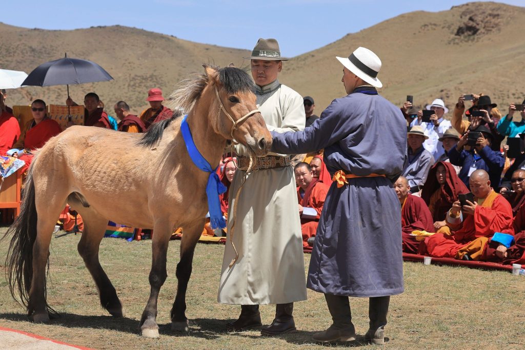 Монгол Улсын Ерөнхийлөгч тэнгэрт хүргэх дуут сумыг Өмнөговь аймгийн Номгон сумын харьяат, Монгол Улсын даяар дуурсагдах мэргэн Ж.Баттөмөрт хүлээлгэн өгч, тус аймгийн Хүрмэн сумын Хүрмэн багийн малчин Г.Нямдоржийн адуун сүргээс сонгосон морийг тэнгэрийн хүлэг болгон сэтэрлэв.