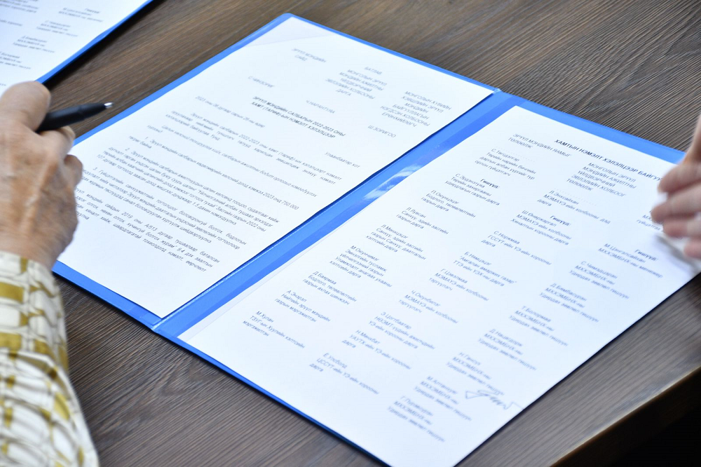 Эрүүл мэндийн сайд С.Чинзориг, Монголын эрүүл мэндийн ажилтны үйлдвэрчний эвлэлийн холбооны дарга Ч.Нарантуяа, Монголын хувийн хэвшлийн эрүүл мэндийн байгууллагын нэгдсэн холбооны ерөнхийлөгч Ш.Зоригоо нар Эрүүл мэндийн салбарын 2022-2023 оны хамт /тариф/-ын нэмэлт хэлэлцээрт өнөөдөр /2023-06-26/ гарын үсэг зурлаа.