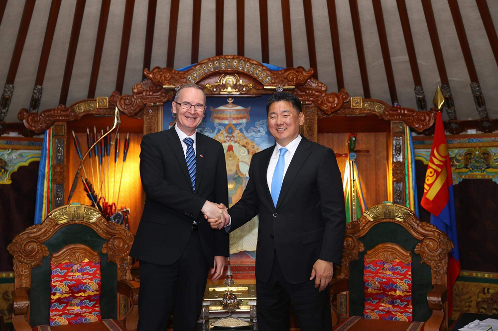 Монгол Улсын Ерөнхийлөгч Ухнаагийн Хүрэлсүх Их Британи, Умард Ирландын Нэгдсэн Хаант Улсаас Монгол Улсад суугаа Элчин сайд Филип Малоныг эх орондоо бүрмөсөн буцаж байгаатай нь холбогдуулан хүлээн авч уулзав.