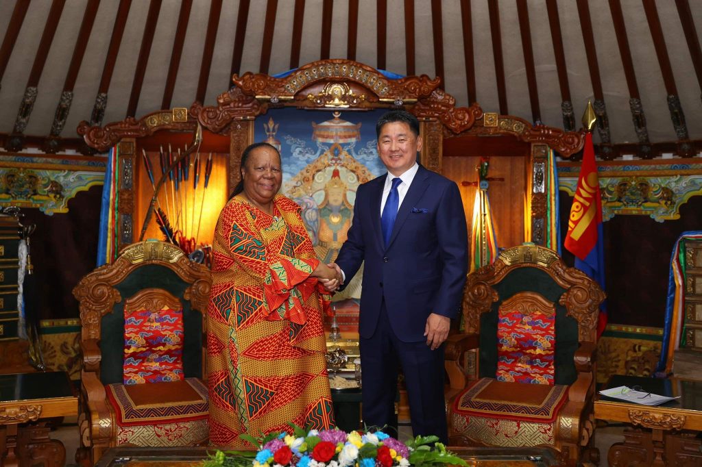 Монгол Улсын Ерөнхийлөгч Ухнаагийн Хүрэлсүх Өмнөд Африкийн Бүгд Найрамдах Улсын Гадаад хэргийн сайд Наледи Пандорыг хүлээн авч уулзлаа.