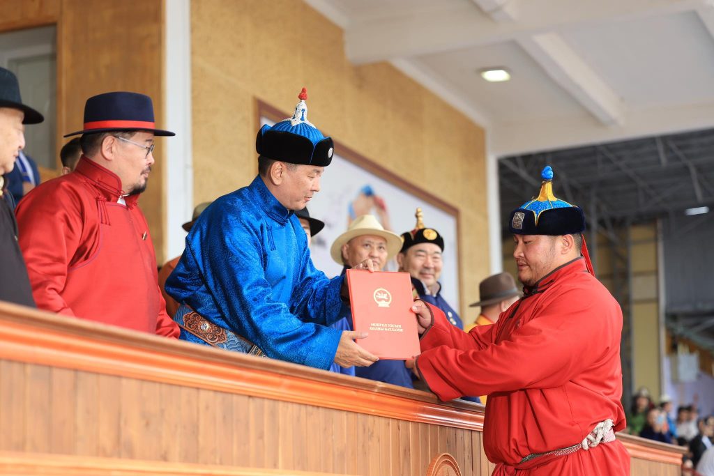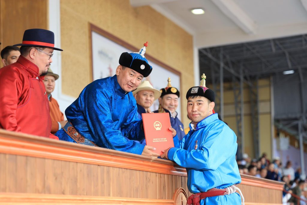 Монгол Улсын Ерөнхийлөгч Ухнаагийн Хүрэлсүх өнөөдөр зарлиг гаргаж, Тулгар төрийн 2232 жил, Их Монгол Улс байгуулагдсаны 817 жил, Үндэсний эрх чөлөө, тусгаар тогтнолоо сэргээн мандуулсны 112 жил, Ардын хувьсгалын 102 жил жилийн ой, Улсын баяр наадмын Үндэсний бөхийн барилдаанд тав давж “Улсын начин” цол, зургаа давж “Улсын харцага” цолны болзол хангасан бөхчүүдэд цол олголоо.
