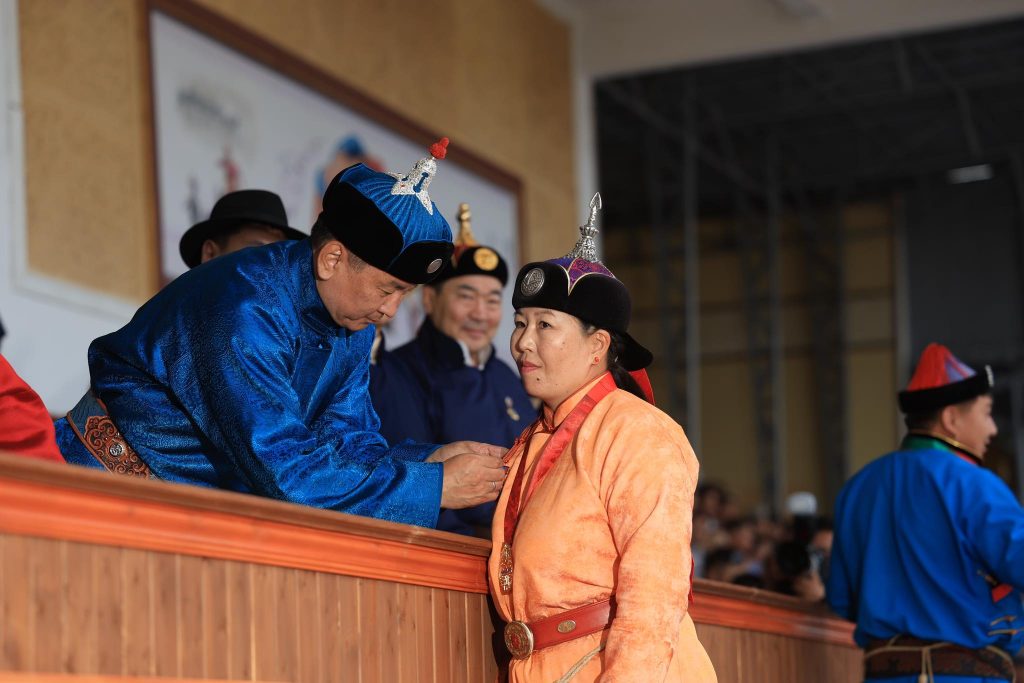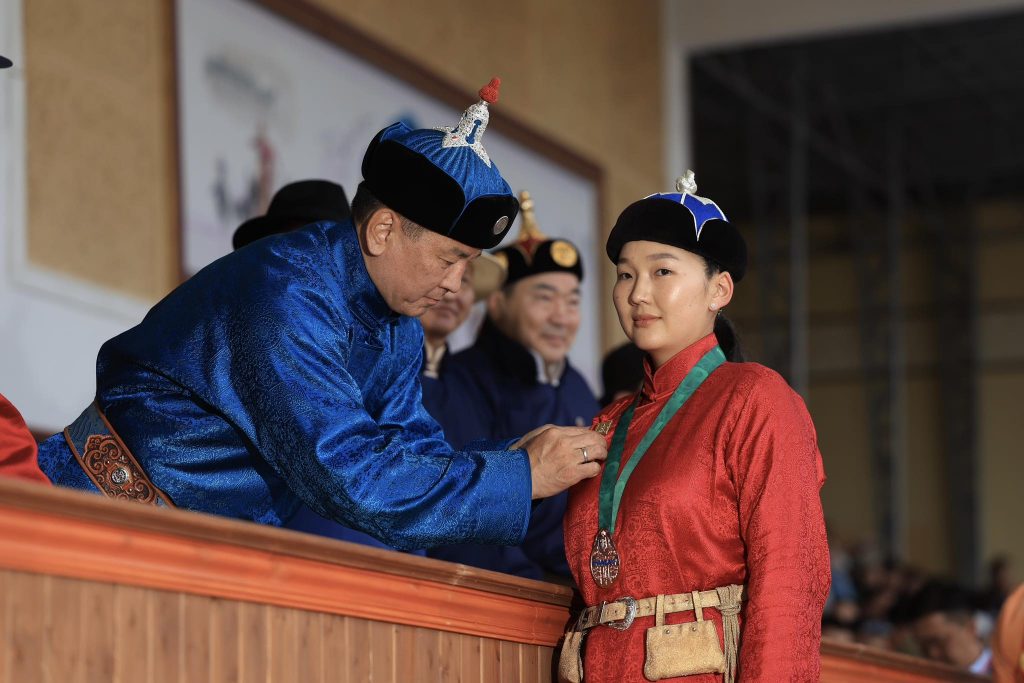 “Улсын цол олгох тухай” зарлигийг Монгол Улсын Ерөнхийлөгчийн Тамгын газрын дарга Я.Содбаатар уншиж танилцуулсны дараа Монгол Улсын Ерөнхийлөгч Ухнаагийн Хүрэлсүх харваачдад Монгол Улсын цолны батламж, тэмдгийг нь гардуулан өгч, баяр хүргэлээ.