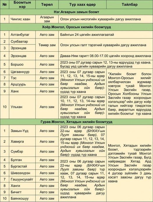Долоодугаар сарын 16-наас баяр наадмын амралтын хуваарь дуусаж, хилийн бүх боомт хэвийн ажиллаж байна.