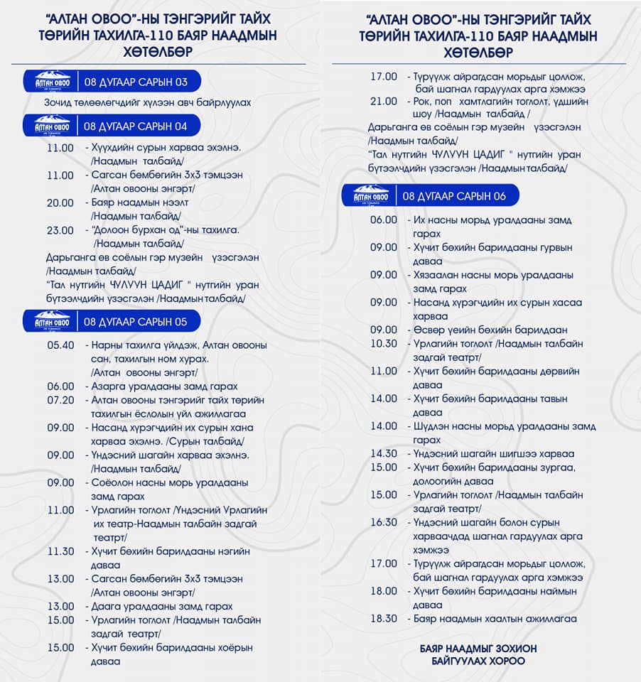 Алтан овооны тэнгэрийг тайх төрийн тахилга наймдугаар сарын 4-6-ны өдөр Сүхбаатар аймгийн Дарьганга суманд болох гэж байна.