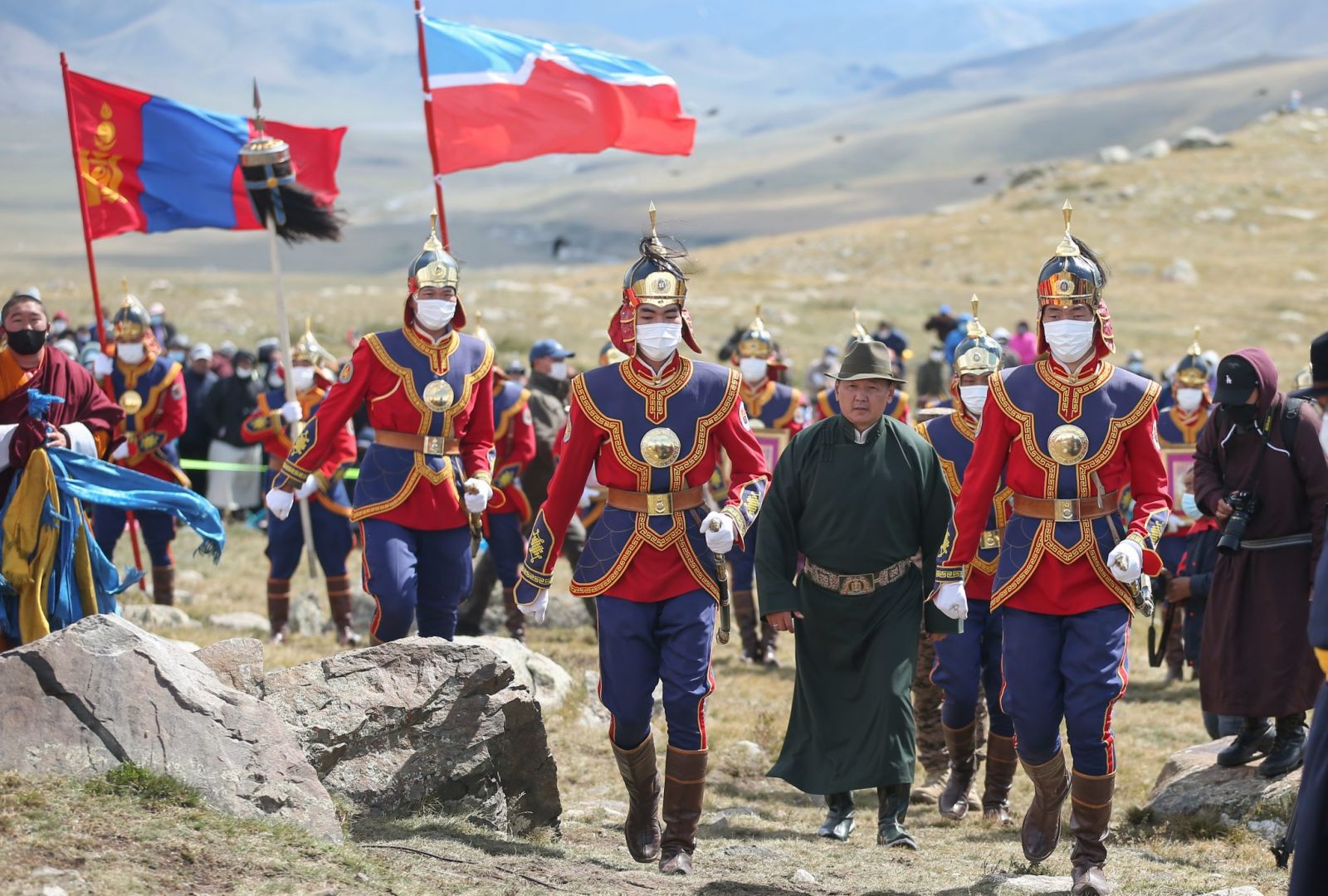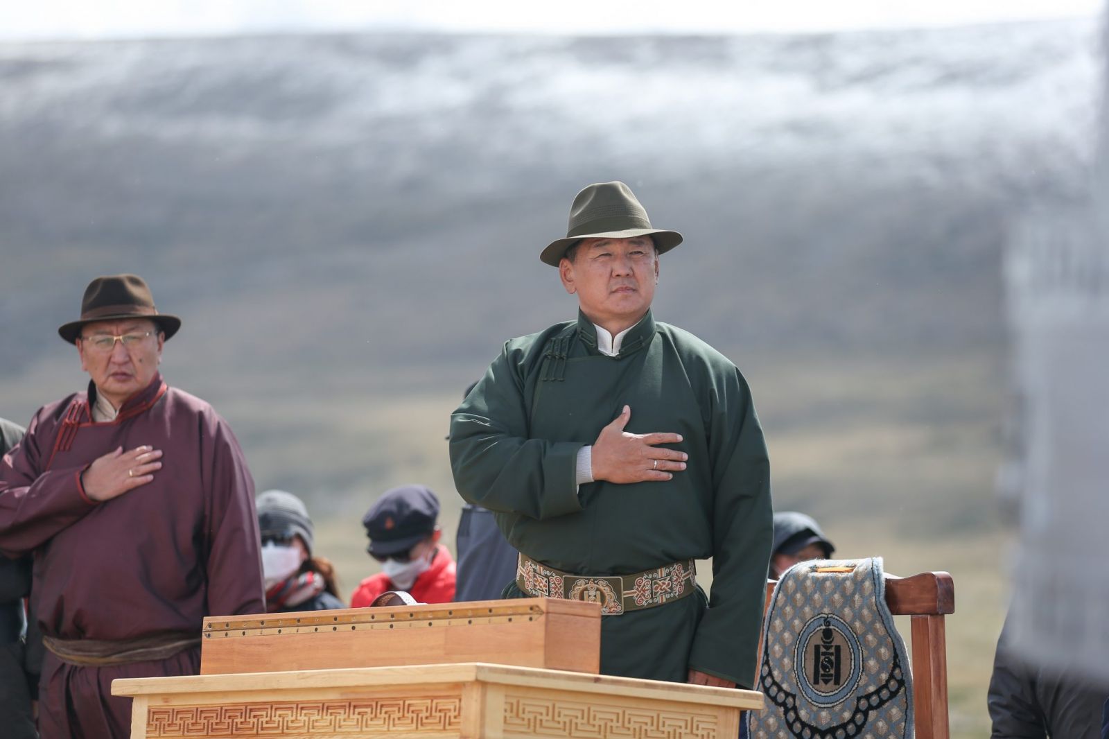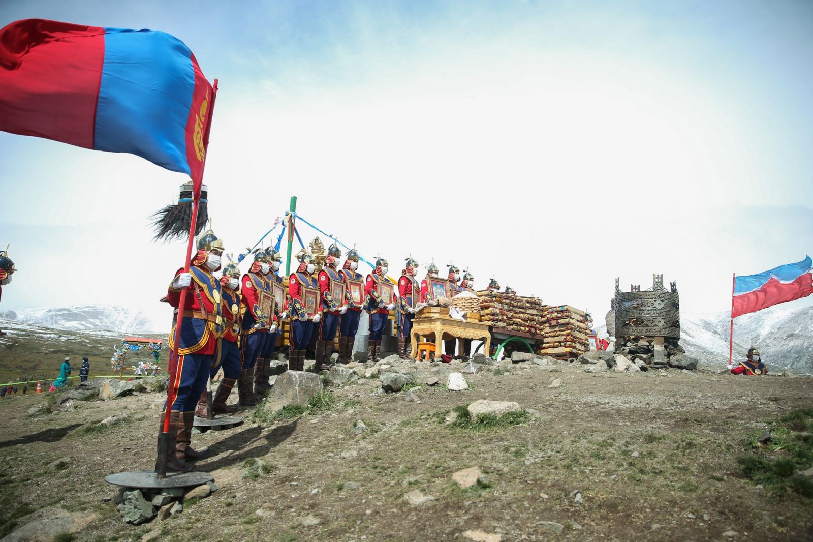 Монгол Улсын Ерөнхийлөгч У.Хүрэлсүх төрийн бэлгэдлийг илэрхийлж, хүндэт харуулын дөрвөн цэргээр хамгаалуулан тусгайлан зассан талбайд хүрэлцэн ирэв. Дараа нь хүндэт харуулын цэргүүд Монгол Улсын Төрийн далбаа, Бүх цэргийн Их хар сүлдний Умарын элч сүлд, Завхан аймгийн далбаа, Их эзэн Чингис хааны хөрөг, Төрийн долоон эрдэнийг тахилын ширээнээ залж байрлууллаа.