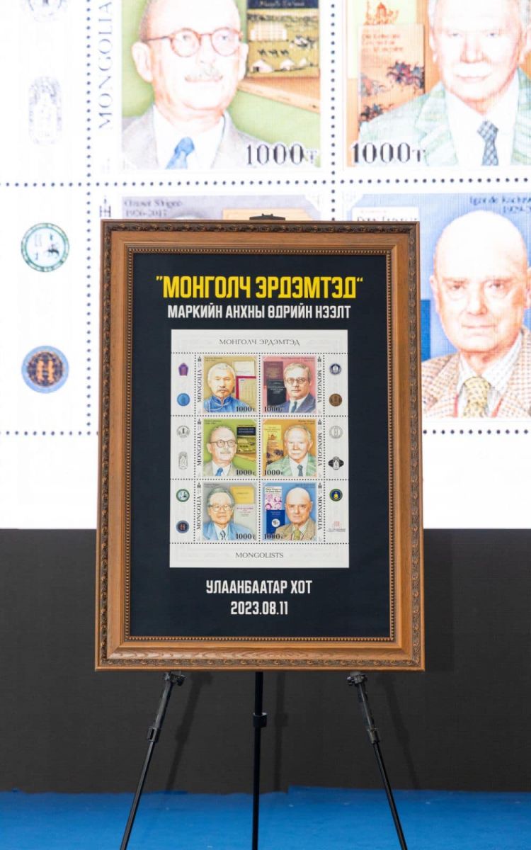 Тус хурлын үеэр Монголын нэрт соён гэгээрүүлэгч, эрдэмтэн, төрийн зүтгэлтэн Жамсрангийн Цэвээн (1881-1942), Зөвлөлтийн нэрт монголч эрдэмтэн, академич Борис Яковлевич Владимирцов (1884-1931), Америкийн монголч эрдэмтэн профессор Оуэн Латтимор (1900-1989), Австрийн нэрт монголч эрдэмтэн, профессор Вальтер Хэйссиг (1913-2005), Японы нэрт монголч эрдэмтэн Шигэо Озава (1926-2017), Австралийн монгол судлалыг үндэслэгч, нэрт эрдэмтэн Игорде Рахевилц (1929-2016) нарын хөрөг, зохиол бүтээлийн дээж, 12 удаагийн их хурлын лого зэргийг дүрсэлсэн “Монголч эрдэмтэд” сэдэвт хэлхээ маркийг нээж Монгол судлаачиддаа бэлэг барилаа.