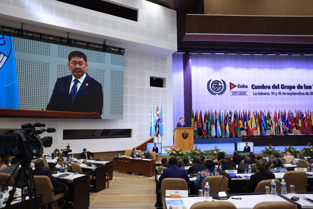 Сүүлийн жилүүдэд дэлхий нийтийг хамарсан, тэр дундаа хөгжиж буй улс орнуудад илүү хүндээр тусаж байгаа цар тахал, уур амьсгалын өөрчлөлт, геополитикийн зөрчил, санхүү болон өрийн асуудал, ядуурал, өлсгөлөн зэрэг хөгжлийн хурдыг сааруулсан сорилт, бэрхшээлүүдийг хамтдаа даван туулахын тулд НҮБ дахь хамгийн том бүлэг болох 77-гийн бүлэг эв санаагаа улам нэгтгэн, хамтын ажиллагаагаа илүү эрчимжүүлэх нь нэн чухал байна.