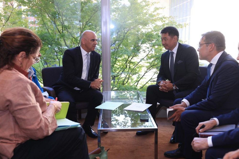 Монгол Улсын Ерөнхийлөгч НҮБ-ын Ерөнхий Ассамблейн 78 дугаар чуулганы Ерөнхий санал шүүмжлэлд оролцох үеэрээ Швейцарын Холбооны Улсын Холбооны Ерөнхийлөгч Ален Берсе-г өөрийнх нь хүсэлтээр хүлээн авч уулзав.