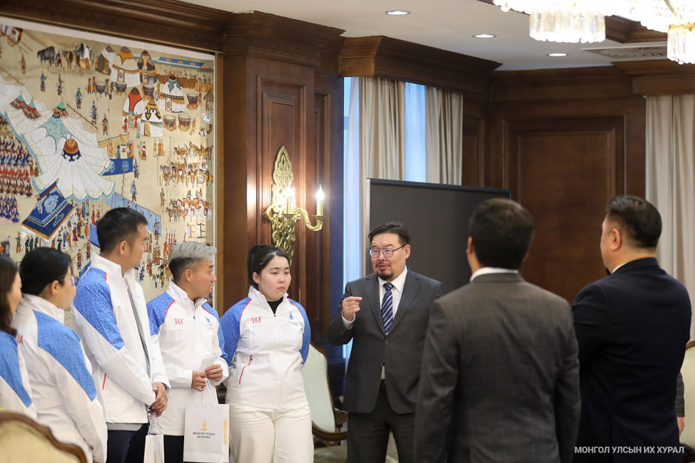 Монгол Улсын Их Хурлын дарга Г.Занданшатар өнөөдөр (2023.09.20) “Ханжоу 2022” Азийн XIX наадамд Монгол Улсаа төлөөлөн оролцох шатрын спортын Үндэсний шигшээ багийн дасгалжуулагч, тамирчдыг хүлээн авч уулзаж, амжилт хүслээ.