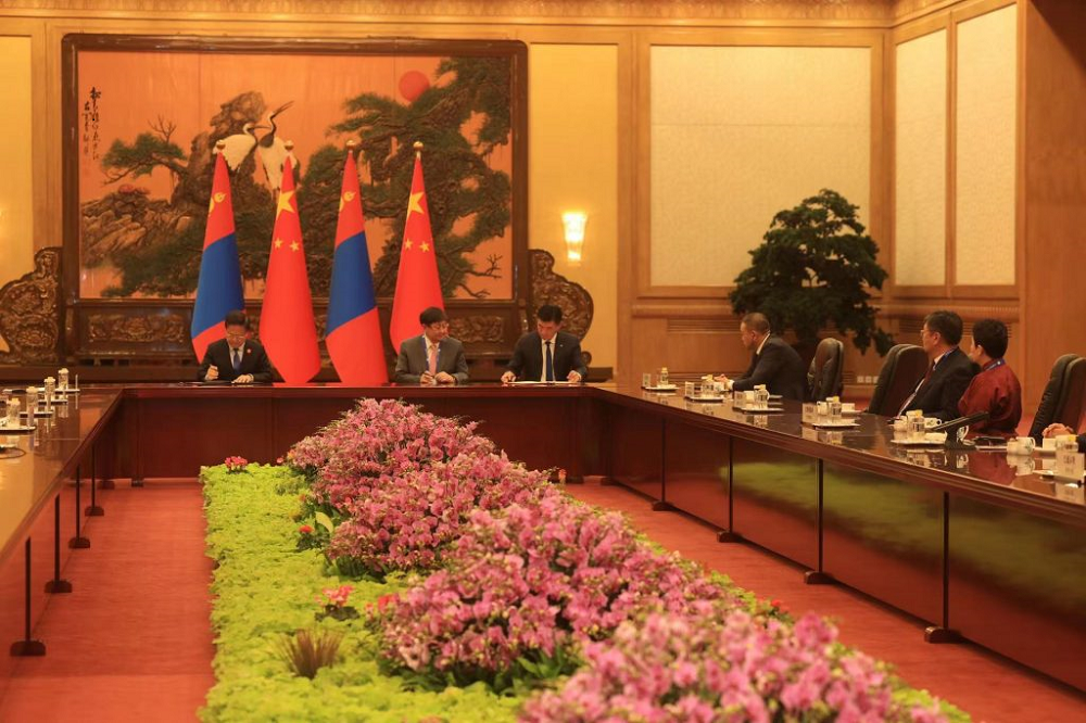 Монгол Улсын Ерөнхийлөгч Ухнаагийн Хүрэлсүх Бүгд Найрамдах Хятад Ард Улсад зохион байгуулагдаж буй “Бүс ба зам” олон улсын хамтын ажиллагааны дээд түвшний чуулга уулзалтад оролцох үеэр 2023 оны 10 дугаар сарын 19-ний өдөр хоёр улсын Төрийн тэргүүн нарыг байлцуулан БНХАУ-ын Ардын Их хурлын ордонд дараах баримт бичигт гарын үсэг зурав.