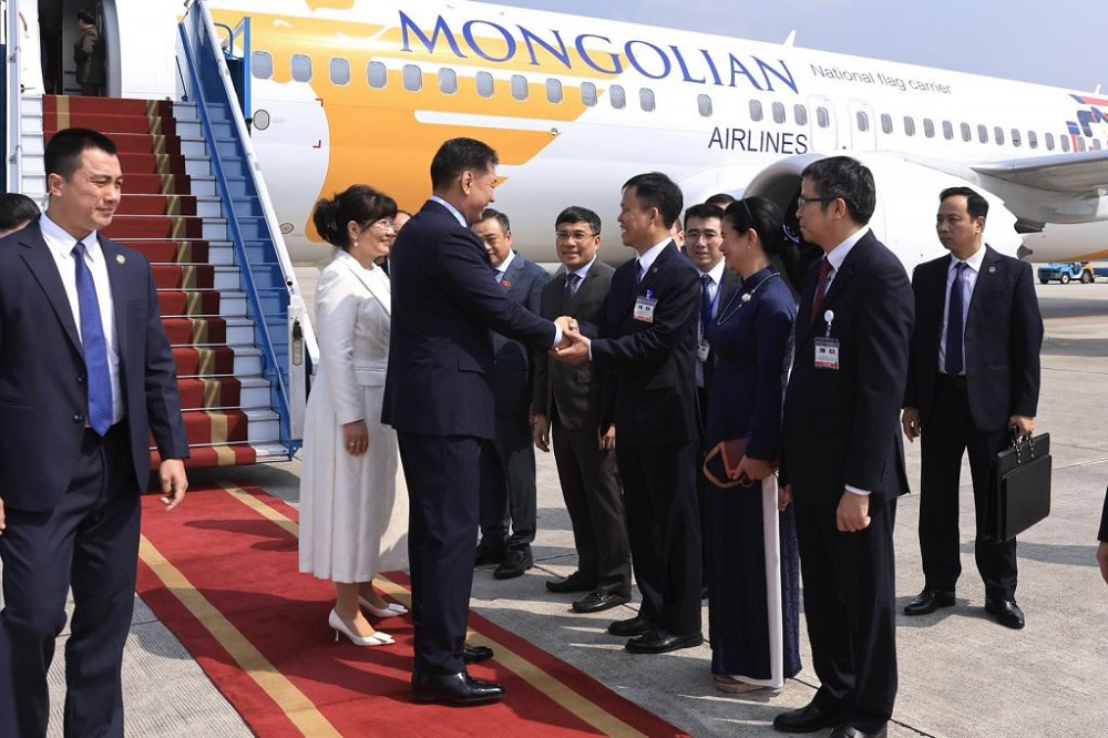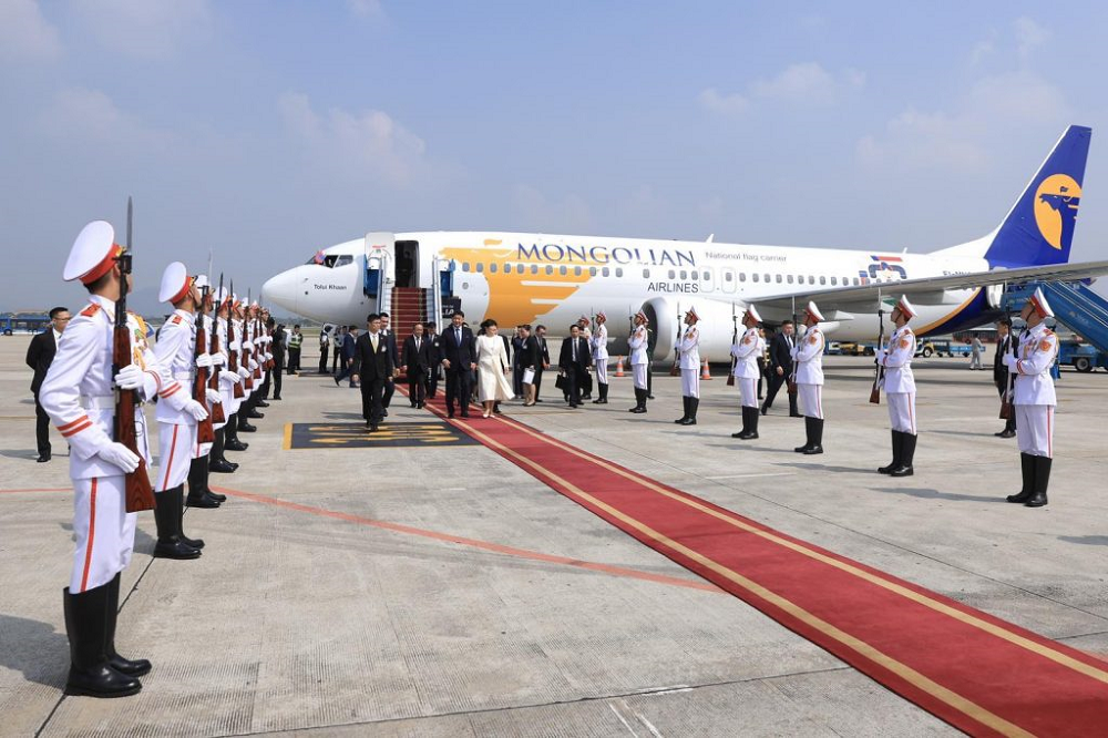 Монгол Улсын Ерөнхийлөгч Ухнаагийн Хүрэлсүх болон дагалдан яваа төлөөлөгчдийг Ханой хотын “Ной Бай” олон улсын нисэх онгоцны буудалд БНСВУ-ын Ерөнхийлөгчийн Тамгын газрын дарга Ле Кхань Хай, Монгол Улсаас БНСВУ-д суугаа Онц бөгөөд Бүрэн эрхт Элчин сайд Ж.Сэрээжав, БНСВУ-аас Монгол Улсад суугаа Онц бөгөөд Бүрэн эрхт Элчин сайд Зоан Хань Дам зэрэг албаны төлөөлөгчид угтан авав.