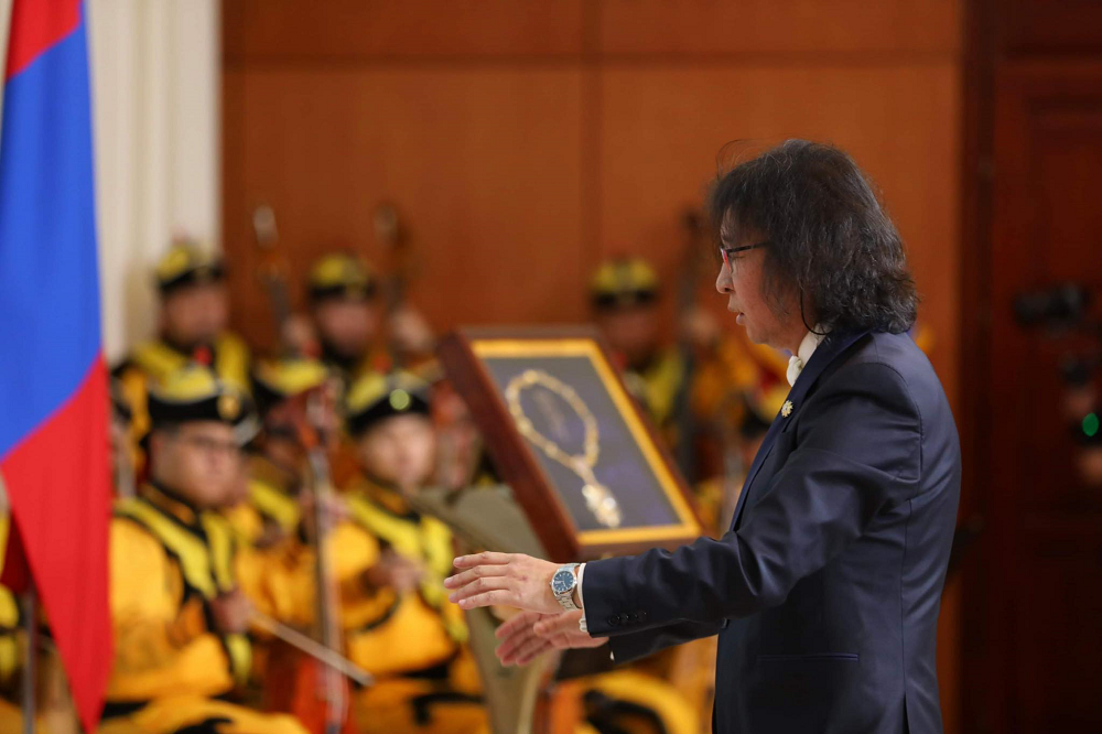 Ерөнхийлөгч хүн төрөлхтний соёлын биет бус өв, монгол үндэстний бахархал болсон морин хуураа дээдлэн дэлгэрүүлж, үндэсний ухамсар, соёл, сэтгэлгээг хөгжүүлэх үйлсэд үнэтэй хувь нэмэр оруулж, дэлхий дахинд улсынхаа нэр хүндийг өргөн, өв соёл, үнэт зүйлийг сурталчлан таниулахад онцгой гавьяа байгуулсныг нь Монголын төр ийнхүү үнэлж байгааг тэмдэглэв.