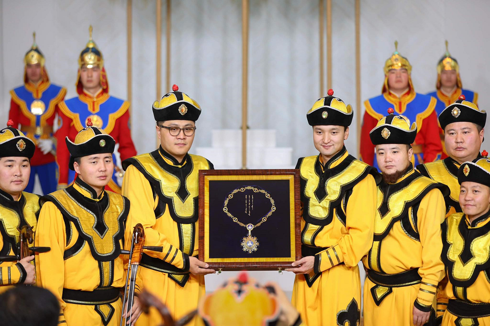 Монгол Улсын Ерөнхийлөгч Ухнаагийн Хүрэлсүх Их эзэн Чингис хааны мэндэлсэн өдөр, “Монгол бахархлын өдөр”-ийг тохиолдуулан “Чингис хаан” тэргүүн зэргийн одонг Монгол Улсын филармонийн Морин хуурын чуулгад хүртээлээ.