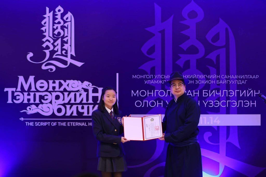 Монгол Улсын Ерөнхийлөгчийн Тамгын газрын дарга Я.Содбаатар, Боловсрол, шинжлэх ухааны сайд Л.Энх-Амгалан, Соёлын дэд сайд М.Батбаяр, Боловсролын ерөнхий газрын дарга Т.Ням-Очир нар шагналыг нь гардуулав.