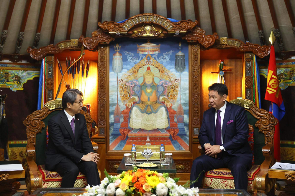 Монгол Улсын Ерөнхийлөгч хоёр улсын хооронд дипломат харилцаа тогтоосны 50 жилийн ойн хүрээнд Япон Улсад хийсэн төрийн айлчлалын дүнгээр талууд Стратегийн түншлэлийг шат ахиулж, “Энх тайван, хөгжил цэцэглэлтийн төлөөх Тусгай стратегийн түншлэл”-ийн өндөр түвшинд гүнзгийрүүлэн хөгжүүлэхээр тохирсныг тэмдэглэв.