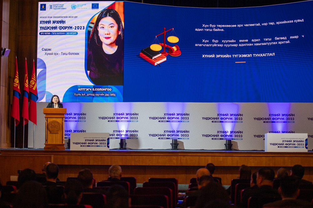 Хүний эрхийн түгээмэл тунхаглал батлагдсаны 75 жилийн ойн хүрээнд Монгол Улсын Ерөнхийлөгчийн ивээл дор “Хүний эрхийн Үндэсний форум-2023” зохион байгуулагдлаа. Форумд Монгол Улсын сайд, Засгийн газрын Хэрэг эрхлэх газрын дарга Д.Амарбаясгалан оролцож, үг хэллээ.