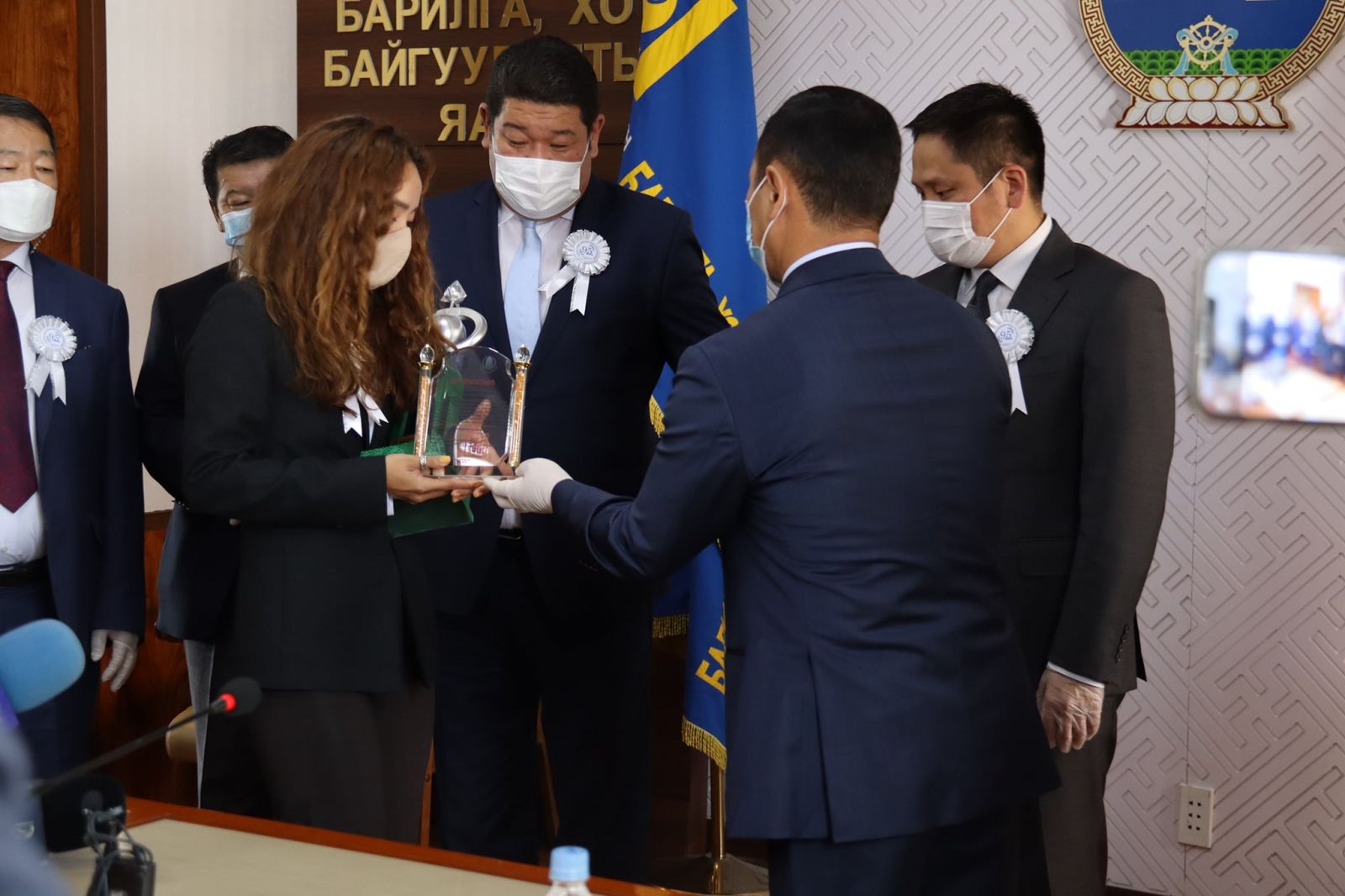 Ийнхүү 2021 оны барилгын салбарын шилдэг 12 аж ахуй нэгжийг алдаршуулан дуудаж, “Баганат өндөрлөг” бүхий цом, өргөмжлөлийг гардуулан, тугаа мандууллаа.