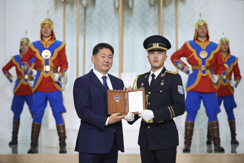 Зэвсэгт хүчний 334 дүгээр ангийн ажиллагааны ахлагч, ахлах ахлагч Одбаатарын Өлзий нарыг шагналаа.