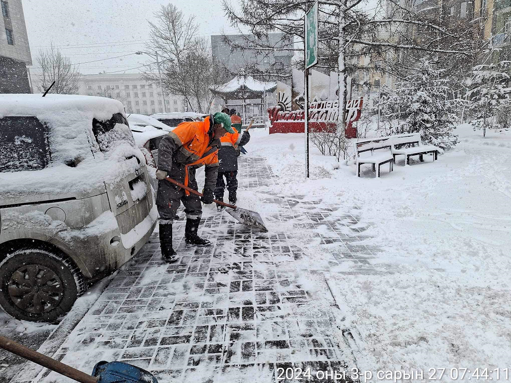 - Чингэлтэй дүүргийн цэвэрлэгээ үйлчилгээ хариуцсан хоёр байгууллагын 100 гаруй ажилтан тусгай зориулалтын зургаан автомашин, нэг экскавор, нэг автогрейдэр, хоёр ковш, хоёр шүүрдэгчтэйгээр ажиллаж, 25 тонн бодис, 5 тонн давс цацав.