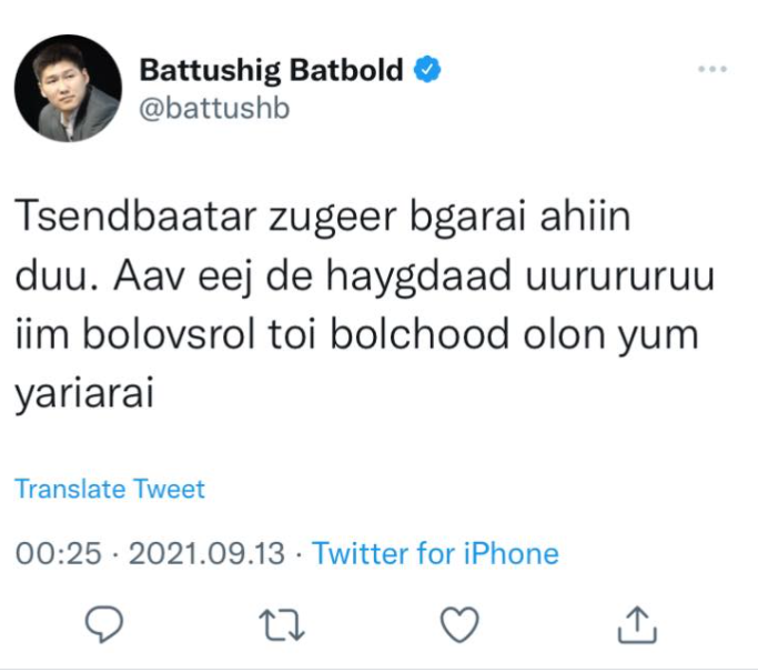 “Цэндбаатар зүгээр байгаарай ахын дүү. Аав ээждээ хаягдаад өөрөөрөө ийм боловсролтой болчихоод олон юм яриарай ” хэмээн жиргээд авлаа