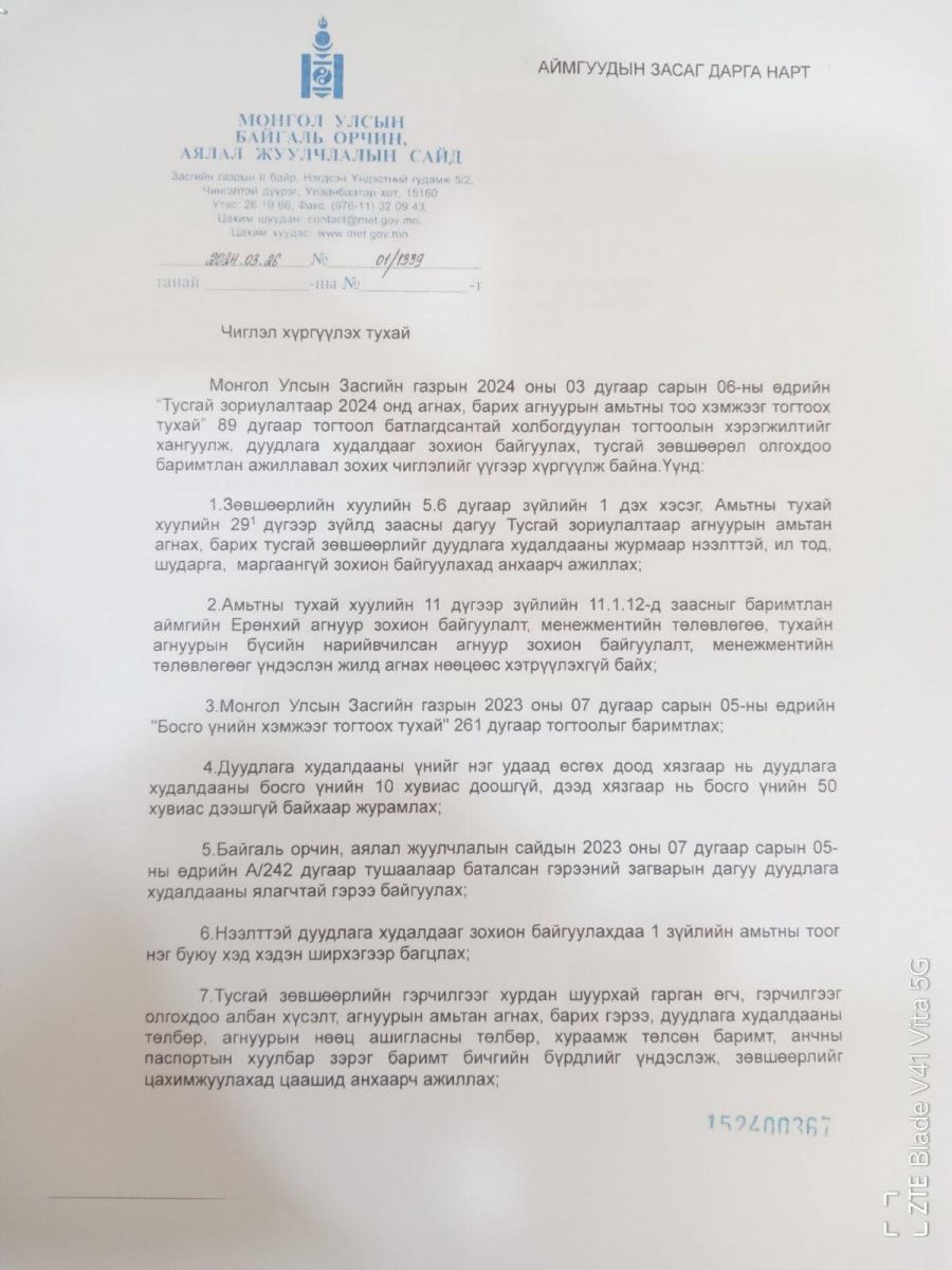 Гэвч БОАЖ-ын сайд Б.Бат-Эрдэнэ энэ оны 3-р сарын 26-нд аймгийн Засаг дарга нарт чиглэл өгөхдөө, хүчингүй болгосон заалтыг зөрчиж, өмнөх гурвалсан гэрээний загвараар дахин гэрээ байгуулах чиглэл өгчээ.