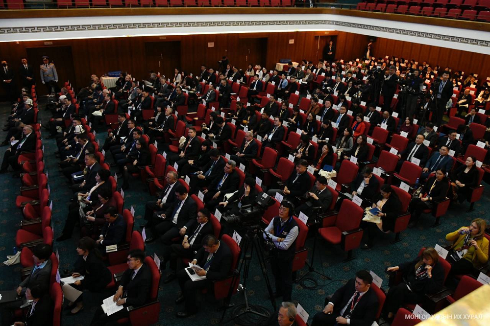 Улсын Их Хуралын дарга Г.Занданшатар хэлсэн үгэндээ, дэлхий дахины энх тайвны асуудлыг хөндөх чухал ач холбогдолтой чуулга уулзалтыг хамтран зохион байгуулж буй болон хүрэлцэн ирсэн зочид төлөөлөгчдөд талархал илэрхийлээд, “Тогтвортой хөгжил, энх тайван хоёр салшгүй холбоотой, нэг нь нөгөөгүйгээр оршин тогтнох боломжгүй” хэмээн “Тогтвортой хөгжлийн зорилт-2030” хөтөлбөрийн Оршилд тунхагласы учир энэхүү 16 дугаар зорилгын хэрэгжилтийг хэлэлцэхээр тусгайлан сонгосныг онцолсон юм. Тэрбээр, монголчууд үр хүүхдийнхээ ирээдүйд санаа зовж байна, улс үндэстний тусгаар тогтнол, бүрэн эрхт байдалд ямар нэг хэлбэрээр хөндлөнгөөс оролцох, түүнд аливаа хэлбэрээр заналхийлэх, хүн төрөлхтний түүх, соёл, хөгжлийн үнэ цэнийг бүдгэрүүлэх аливаа оролдлогоос бид ямагт зайлсхийх учиртай гэлээ. Үүнд улс орнуудын хамтын хүчин чармайлт, түүний дотор “Алтай дамнасан тогтвортой байдлын яриа хэлэлцээ” чухал үүрэг гүйцэтгэнэ гэдэгт итгэлтэй байгаагаа тэрбээр илэрхийлээд, Монгол Улс олон талт хамтын ажиллагааны хүрээнд НҮБ-тай идэвхтэй хамтран ажиллахын зэрэгцээ 2023-2027 онд өрнүүлж буй хамтын ажиллагаандаа “хүн төвтэй засаглал, эрх зүйт ёс, хүний эрх”-ийг тэргүүлэх чиглэл хэмээн тодорхойлсныг танилцуулав. Улсын Их Хурал засаглалын тогтолцоондоо суурь реформ хийх, парламентын ардчиллыг бэхжүүлэх үзэл баримтлалыг агуулсан Үндсэн хуулийн шинэчлэлийг хийснийг тэрбээр онцлоод, нийгэмд шударга ёсыг тогтоох, авлигатай тэмцэх асуудалд Монголын төр, засаг, олон нийт эв санааны нэгдэлтэй байж, сүүлийн 4-5 жилд эрчит давалгаа, цэгцрэх хөдөлгөөн болон өрнөж байна гэлээ.