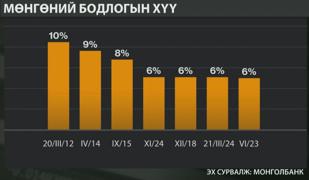 Судалгаанд оролцсон шинжээчид бодлогын хүүг түүхэн доод зургаан хувьд хэвээр хадгална гэж санал нэгтэйгээр таамаглажээ.