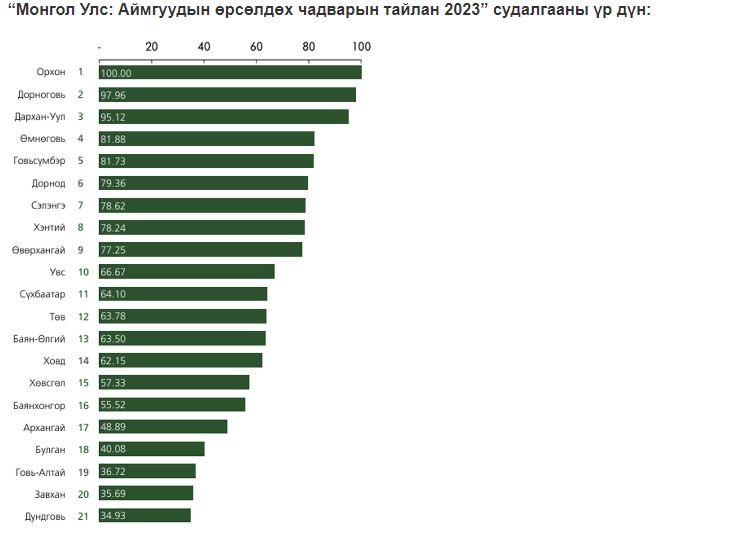 Жил бүр гардаг энэ судалгаагаар зарим аймгууд өрсөлдөх чадвараа ахиулсан бол жилээс жилд сүүл мушгидаг хэдэн аймаг жагсаалтын хойгуур дахин бичигджээ.