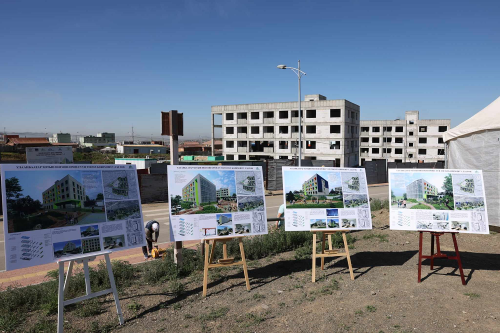 “Нийслэлийн Засаг даргын Тамгын газар, Азийн Хөгжлийн банк болон Уур амьсгалын Ногоон сантай хамтран хэрэгжүүлж буй “Улаанбаатар хотын ногоон орон сууц төсөл”-ийн 150 айлын барилга угсралтын ажил Баянхошуу дэд төвд эхэллээ.