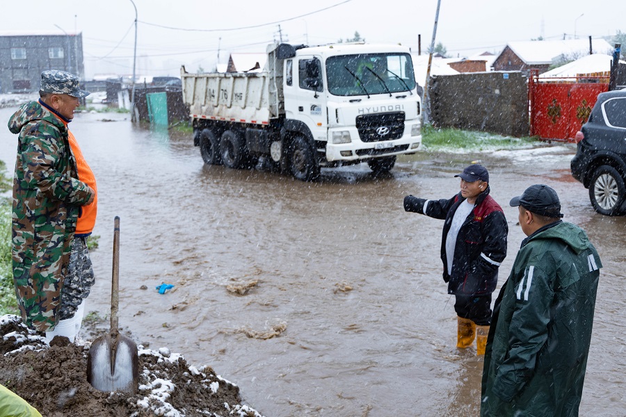 Өнгөрсөн шөнөөс хойш үргэлжлэн орж буй усархаг борооны улмаас Улаанбаатар хотын нийт газраар нөхцөл байдал хүнд байна. Иймд Сонгинохайрхан дүүргийн онцгой комисын дарга бөгөөд дүүргийн Засаг дарга Н.Алтаншагайгаар ахлуулсан алабныхан нийт 55 ажилтан, алба хаагч, 28 тусгай зориулалтын автомашин, тенхик хэрэгсэлтэйгээр 2, 5, 9, 15, 18, 20, 25, 26, 27, 29, 32, 33, 35-р хороодын үерийн асуудал үүссэн байршил дээр шуурхай арга хэмжээ авч ажиллаж байна.