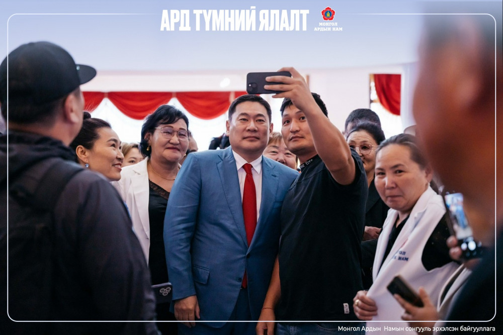 Тэрбээр “Дэлхийд гайхагдсан элсэн манхан, үлэг гүрвэлийн өндөг, эрдэс баялгийн охь болсон, оюунлаг Өмнөговьчууд та бүхэнтэйгээ дахин уулзаж байгаадаа баяртай байна. Ерөнхий сайдын хувиар Өмнөговь аймагт өнгөрсөн хугацаанд зургаан удаа буюу хамгийн олон ажиллажээ. Энэ удаагийн сонгууль ард түмэн ялах уу, авлигачид ялах уу гэдгийг шийдэх учир Өмнөговьчууд та бүхэн Монгол Ардын намд саналаа өгч, эхлүүлсэн ажил, шударга ёсны төлөөх тэмцлийг нь үргэлжлүүлээрэй. Нүүрсний хулгайтай тэмцэсний дүнд монголчууд бид нийтээрээ байгалийн баялгаасаа өгөөж хүртэж эхэлсэн. “Эрдэнэс Тавантолгой”-н 1072 хувьцааг амилуулж ногдол ашгаа тараасан. Үндэсний баялгийн сангаа байгуулж чадсан, эдийн засаг өссөн, анх удаа төсөв ашигтай гарсан гээд олон сайн мэдээ, эерэг өөрчлөлтүүд гарлаа. Ард түмэн ялах уу, хилийн чанадаас ажиглаж буй бүлэглэл ялах уу гэдэг сонголтын өмнө та бид хамтдаа байна” гэлээ.