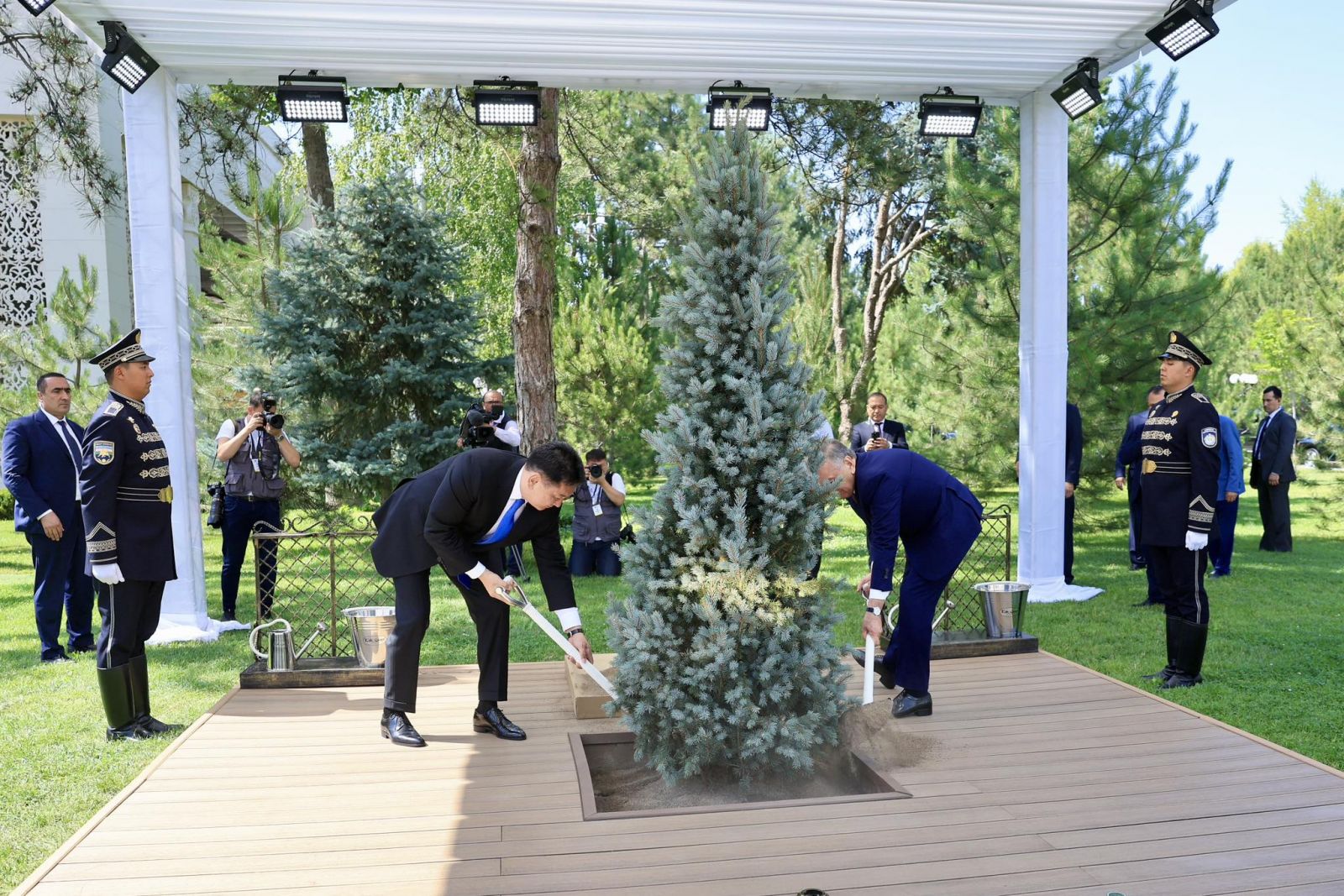 Монгол Улсын Ерөнхийлөгч У.Хүрэлсүх, гэргий Л.Болорцэцэг, Бүгд Найрамдах Узбекистан Улсын Ерөнхийлөгч Ш.Мирзиёев, гэргий З.Мирзиёева нар “Куксарой” цогцолборын “Хүндэт зочдын төгөл”-д ард түмний найрамдал, нөхөрлөлийг бэлгэдэн дурсгалын мод тарилаа.
