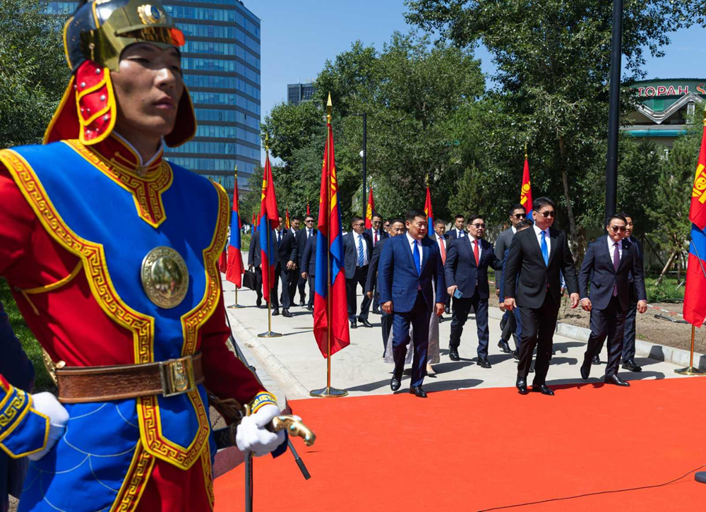 Ёслолын арга хэмжээнд Монгол Улсын Ерөнхийлөгч У.Хүрэлсүх, УИХ-ын дарга Д.Амарбаясгалан, Ерөнхий сайд Л.Оюун-Эрдэнэ нар оролцож, цэргийн хүндэтгэлийн жагсаал, төрийн дуулал эгшиглүүлж Төрийн алтан соёмбот далбаагаа хүндэтгэлтэйгээр мандууллаа.