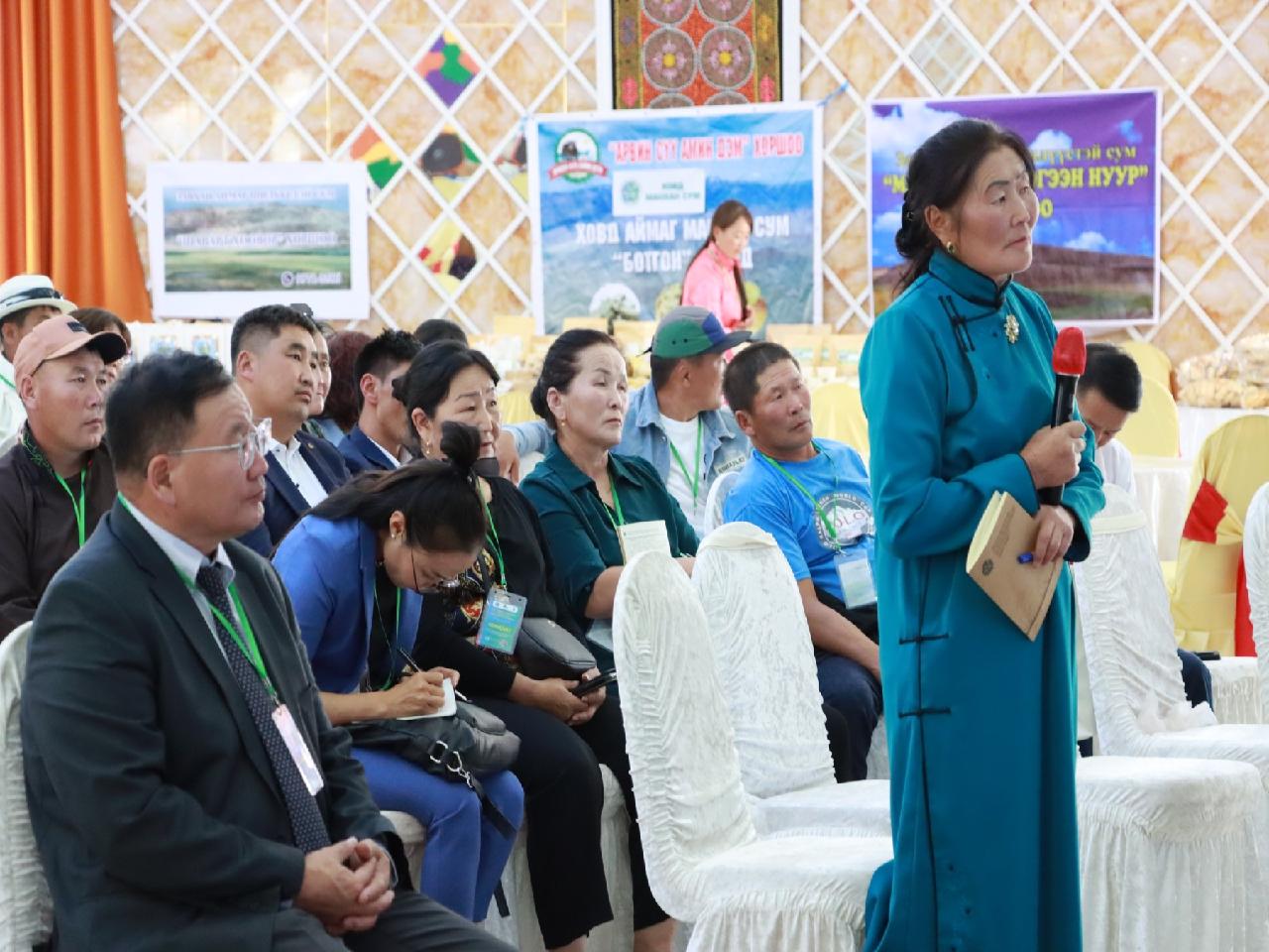 ХХААХҮЯ-ны Бодлого төлөвлөлтийн газрын шинжээч Э.Сугарбаяр малчид, хоршооны гишүүдийн сайн туршлагыг хуваалцах, загвар хоршооны үйл ажиллагааг танилцуулах, төр-хувийн хэвшлийн түншлэлийг дэмжих зорилгоор АДАПТ төслөөс зохион байгуулж буй үзэсгэлэн, сургалтын үйл ажиллагаанд оролцогчдод төрийн бодлого, чиглэлийн танилцуулав.