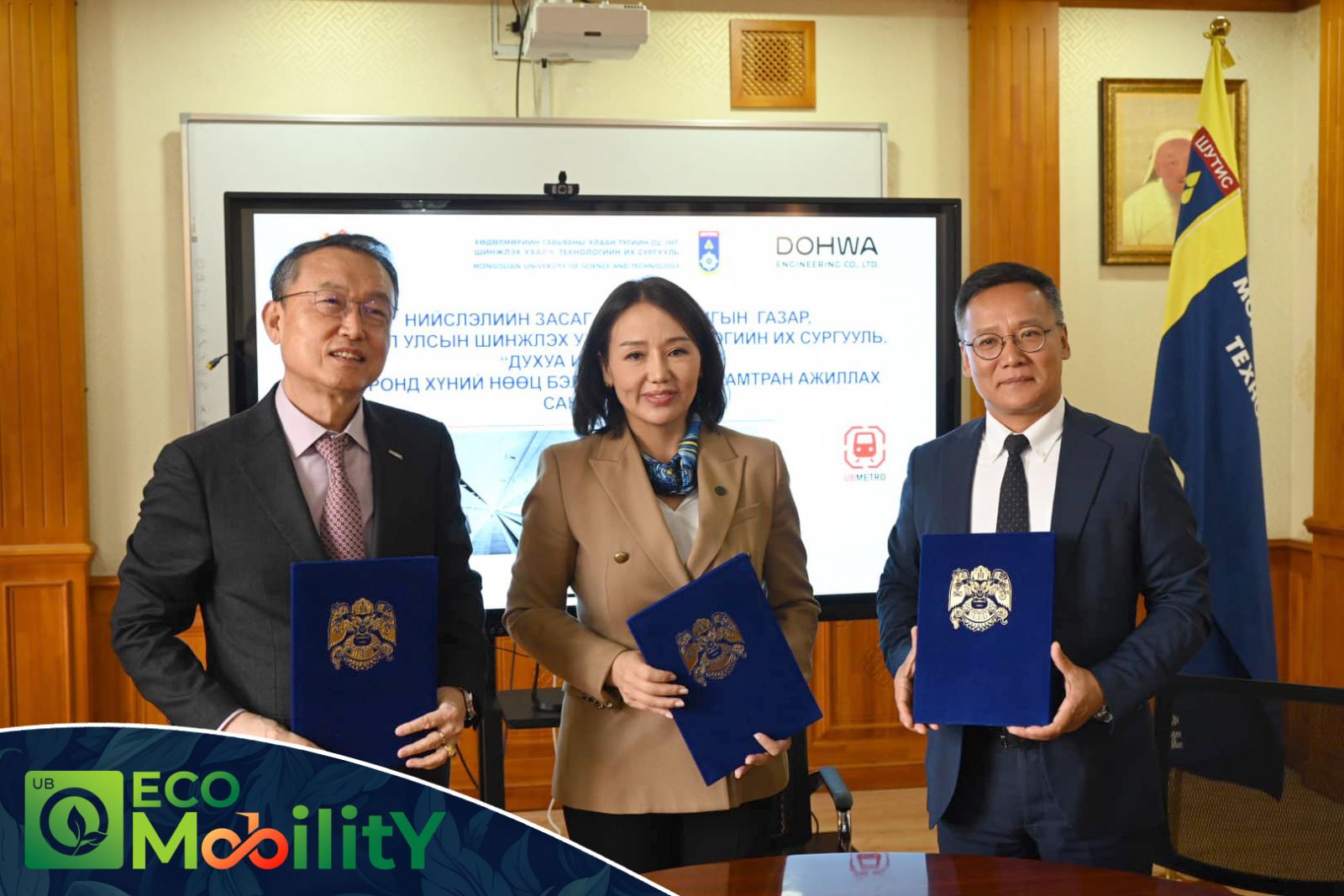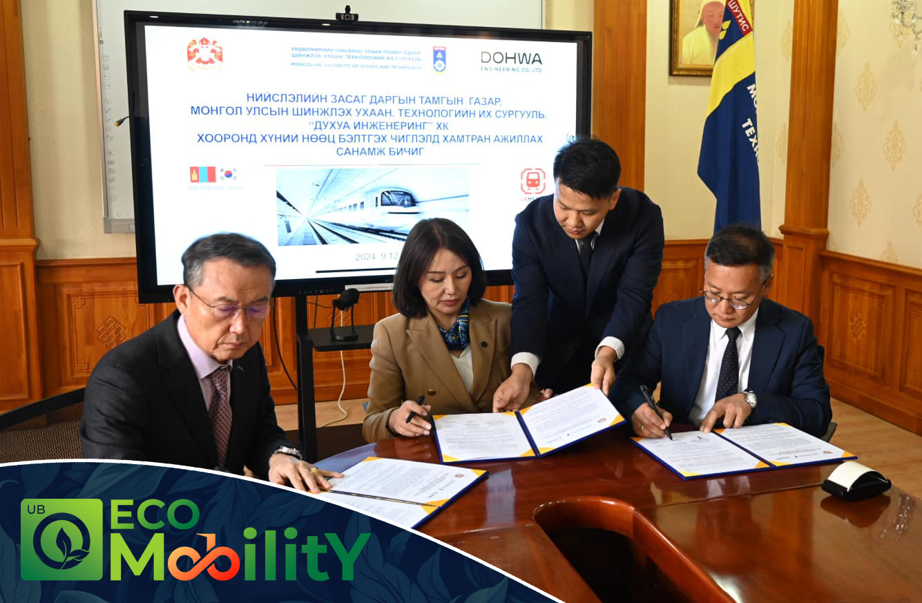 НЗДТГ, Монгол Улсын Шинжлэх Ухаан, Технологийн Их Сургууль /ШУТИС/ болон "Духуа инженеринг" ХК нар хүний нөөц бэлтгэх чиглэлд хамтран ажиллах гурван талт санамж бичиг байгууллаа. Хамтын ажиллагааны санамж бичигт нийслэлийн Засаг даргын Нийгмийн салбар, ногоон хөгжил болон агаар, орчны бохирдлын асуудал хариуцсан орлогч Л.Хосбаяр, ШУТИС-ын Ректор, Доктор (Ph.D), профессор Т.Намнан болон "Духуа инженеринг" ХК-ийн Тээврийн салбарын Ерөнхий захирал Чон Су Дун нар гарын үсэг зурав.