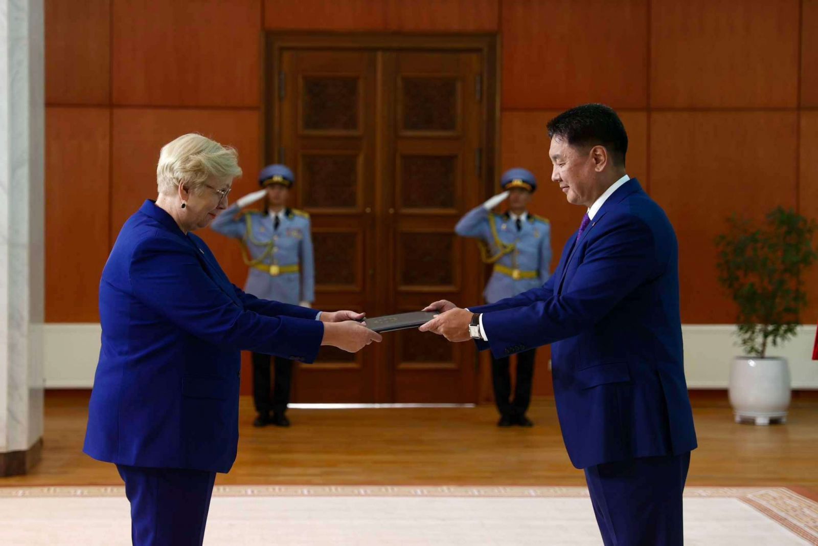 Монгол Улсын Ерөнхийлөгч Ухнаагийн Хүрэлсүхэд Европын Холбооноос Монгол Улсад суух Онц бөгөөд Бүрэн эрхт Элчин сайд Ина Марчюлёните Итгэмжлэх жуух бичгээ өргөн барилаа.