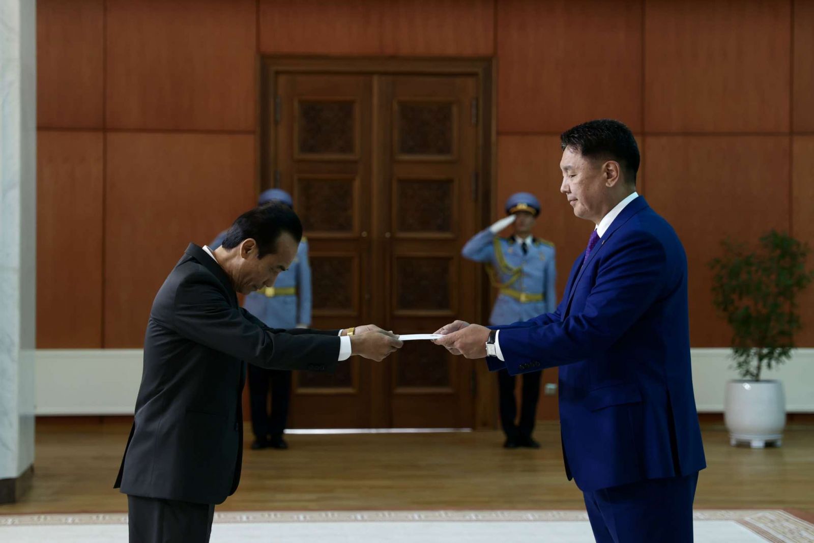 Монгол Улсын Ерөнхийлөгч Ухнаагийн Хүрэлсүхэд Бүгд Найрамдах Ардчилсан Лаос Ард Улсаас Монгол Улсад суух Онц бөгөөд Бүрэн эрхт Элчин сайд Хунгээв Сүгсавад Итгэмжлэх жуух бичгээ өргөн барив.