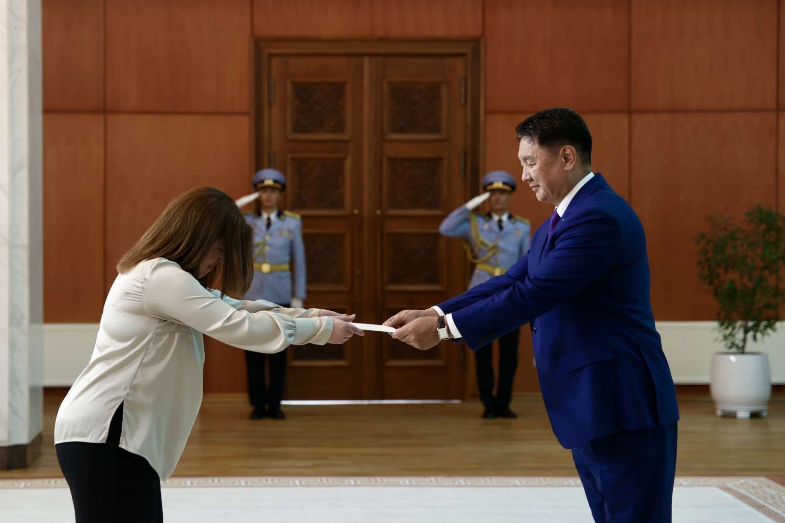 Монгол Улсын Ерөнхийлөгч Ухнаагийн Хүрэлсүхэд Бүгд Найрамдах Франц Улсаас Монгол Улсад суух Онц бөгөөд Бүрэн эрхт Элчин сайд Коринн Пэрера Да Силва Итгэмжлэх жуух бичгээ өргөн барилаа.