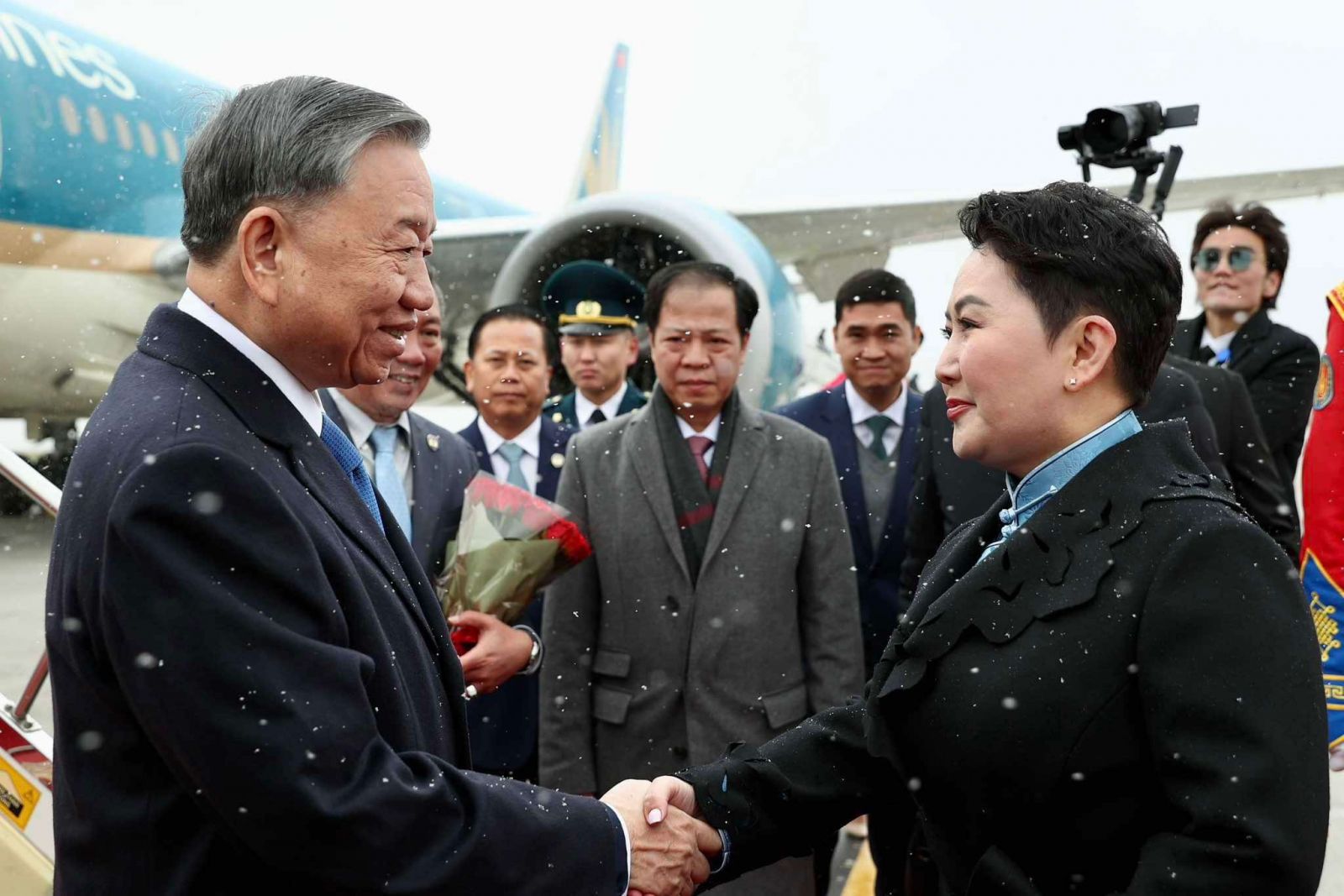 Бүгд Найрамдах Социалист Вьетнам Улсын Ерөнхийлөгч То Лам болон дагалдан яваа төлөөлөгчдийг “Чингис хаан” олон улсын нисэх онгоцны буудалд Гадаад харилцааны сайд Б.Батцэцэг, Монгол Улсаас Бүгд Найрамдах Социалист Вьетнам Улсад суугаа Онц бөгөөд Бүрэн эрхт Элчин сайд Ж.Сэрээжав, Бүгд Найрамдах Социалист Вьетнам Улсаас Монгол Улсад суугаа Онц бөгөөд Бүрэн эрхт Элчин сайд Нгуен Дуан Тань тэргүүтэй албаны төлөөлөгчид угтав.