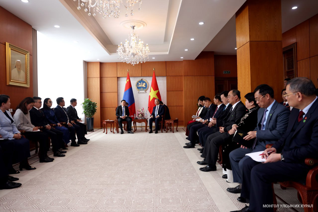 Уулзалтын эхэнд Монгол Улсын Их Хурлын дарга Д.Амарбаясгалан Бүгд Найрамдах Социалист Вьетнам Улсын Ерөнхийлөгч То Лам-ыг Монгол Улсын Ерөнхийлөгч У.Хүрэлсүхийн урилгаар Монгол, Вьетнамын хооронд дипломат харилцаа тогтоосны түүхт 70 жилийн ойн хүрээнд Монгол Улсад төрийн айлчлал хийж буйд баяртай байгаагаа илэрхийлэв.