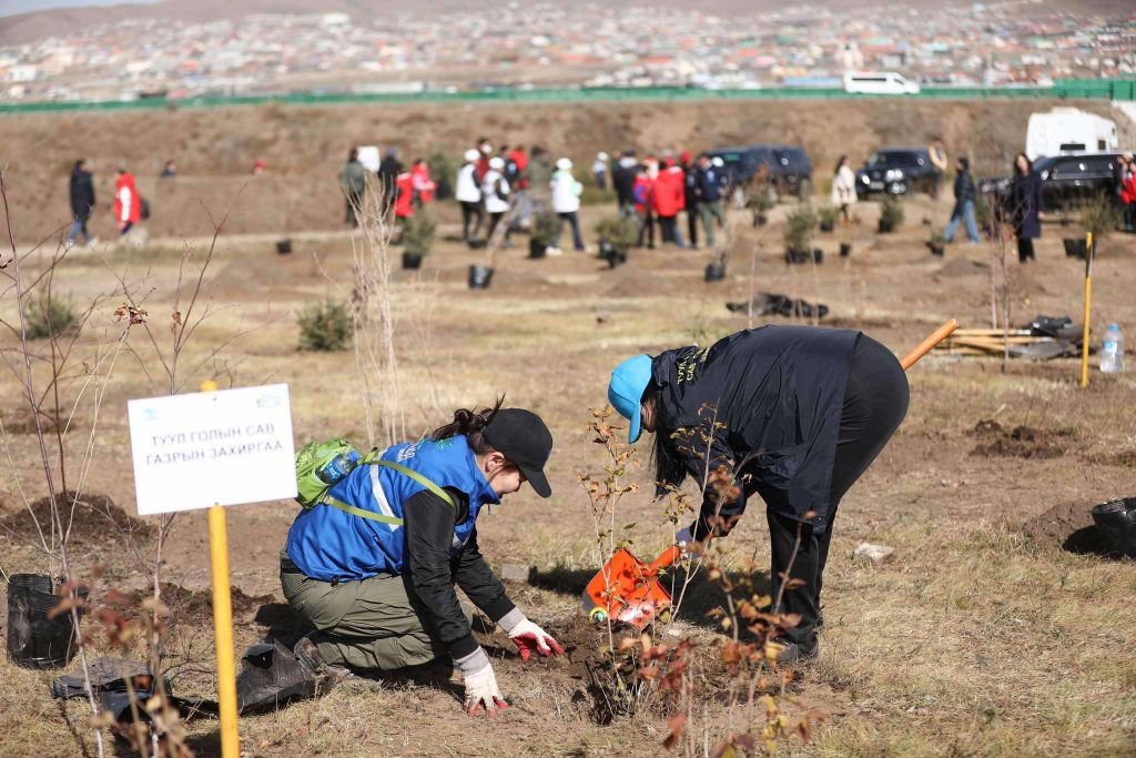 “Ногоон хэрэм” цэцэрлэгт хүрээлэнд 20 гаруй төрийн болон төрийн бус байгууллага, аж ахуйн нэгжийн ажилтан, алба хаагчид мод тарилаа.