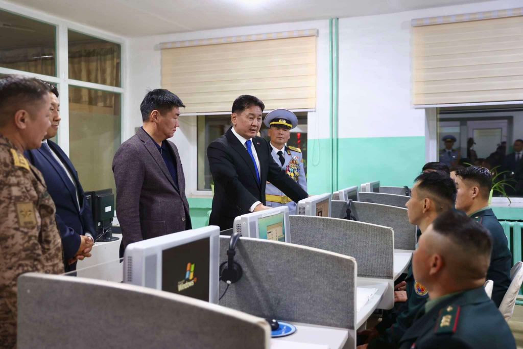 Ерөнхийлөгч тус ангийн Гадаад хэлний сургалтын төвд зочилж, англи хэлний анхан шатны хичээлд суралцаж буй ахлагчидтай уулзав.