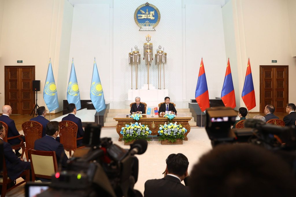 Казахстан, Монгол Улс нь олон улсын болон бүс нутгийн түвшинд нягт харилцаа тогтоосон. Олон чухал зүйл дээр ижил байр суурьтай байдаг. Хамтын ажиллагаа маань дэлхийн болон бүс нутгийн байгууллагуудын хүрээнд хөгжиж байна. Нэн ялангуяа Ази дахь хамтын ажиллагааг бэхжүүлэхэд анхаарал хандууллаа.