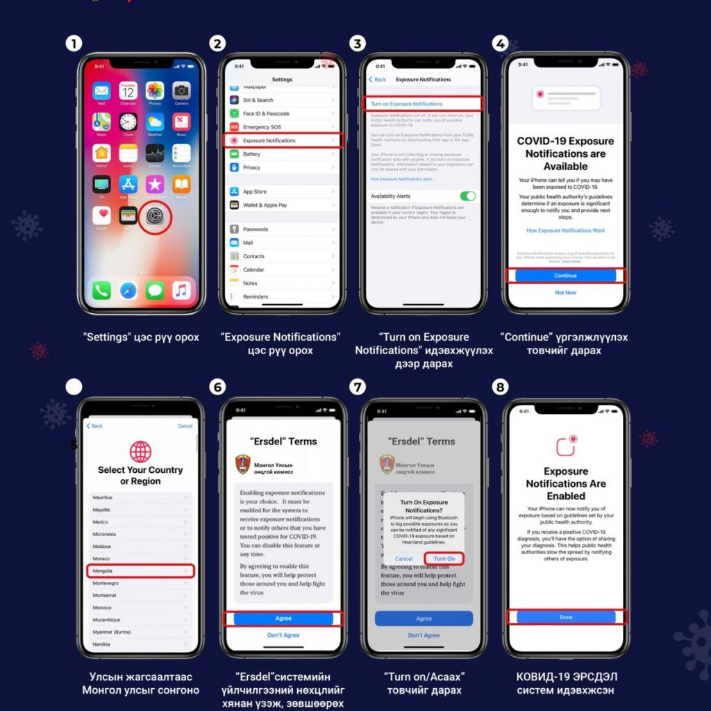 Улсын Онцгой Комиссоос Apple болон Google компаниуд хамтран зохион бүтээсэн Exposure Notification системийг Монгол Улсад монгол болон англи хэл дээр “COVID-19 ERSDEL” нэрээр монголчуудад ашиглах боломжийг E-Mongolia-ийн дэмжлэгтэйгээр бүрдүүллээ.