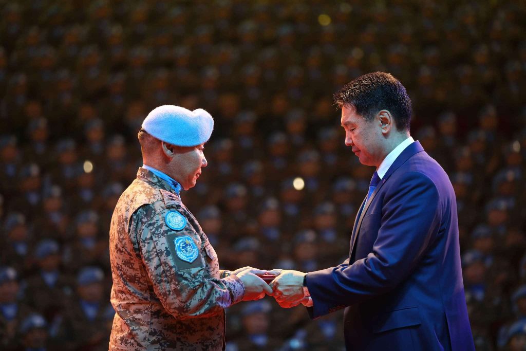 Өргөсөн тангарагтаа үнэнч байж, эр зориг, тэсвэр хатуужил, авхаалж самбаа, мэргэжлийн ур чадвараа дайчлан, энхийг сахиулах эрхэм хүндтэй бөгөөд хариуцлагатай үүргээ нэр төртэй биелүүлсэн энхийг сахиулагчдад төр, ард түмний нэрийн өмнөөс халуун баяр хүргэв.