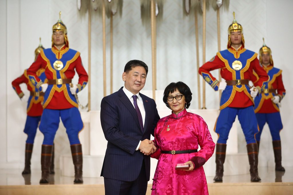 Монгол Улсын Ерөнхийлөгч Ухнаагийн Хүрэлсүх зарлиг гарган, анхдугаар Үндсэн хуулиа баталж, Бүгд Найрамдах Улсаа тунхагласны түүхт 100 жилийн ойг тохиолдуулан нэр бүхий эрхмүүдэд төрийн дээд цол, одон, медаль хүртээлээ.