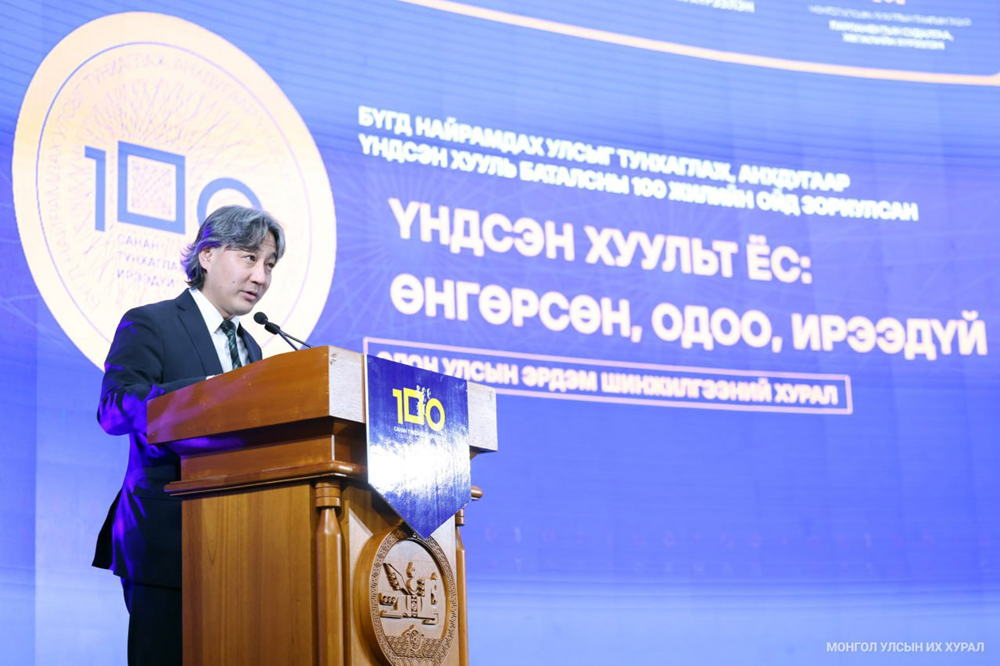 Бүгд Найрамдах Улсыг тунхаглаж, анхдугаар Үндсэн хууль баталсны 100 жилийн ойн хүрээнд зохион байгуулж буй “Үндсэн хуульт ёс: Өнгөрсөн, одоо, ирээдүй” олон улсын эрдэм шинжилгээний хурал өнөөдөр (2024.11.25) Төрийн ордонд боллоо.