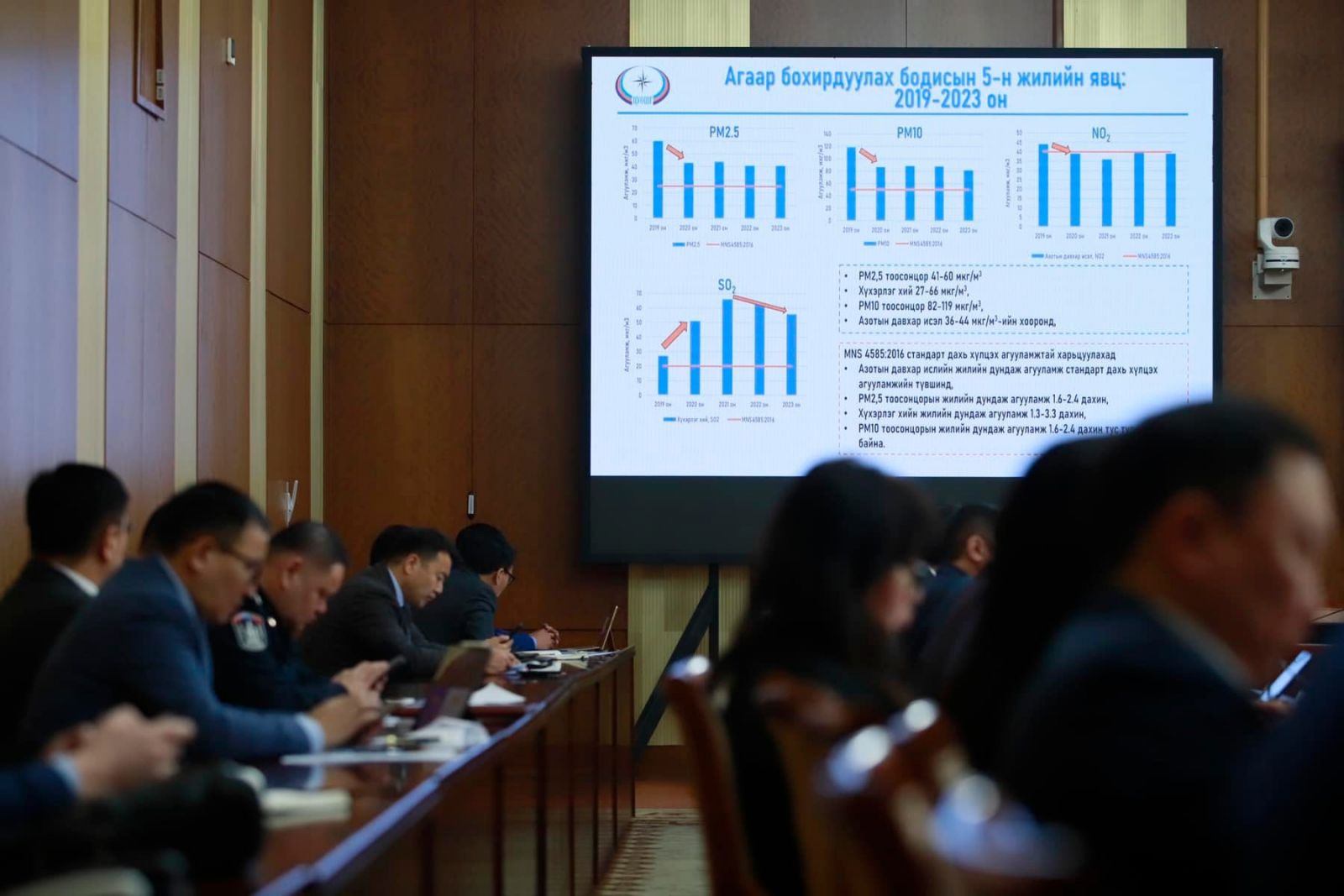 Хуралдаанаар Монгол Улсын Шадар сайд, УОК-ын дарга С.Амарсайхан Өвөлжилт, хаваржилтын бэлтгэл ажлын хүрээнд хийгдэж буй ажлууд, Ирэх саруудын цаг агаарын нөхцөл байдал, Нийслэлийн агаарын чанарын нөхцөл байдал, Агаар орчны бохирдлыг бууруулах арга хэмжээ, Шахмал түлшний үйлдвэрийн ажлын явцын талаарх танилцуулга мэдээллийг сонсож, үүрэг чиглэл өглөө.